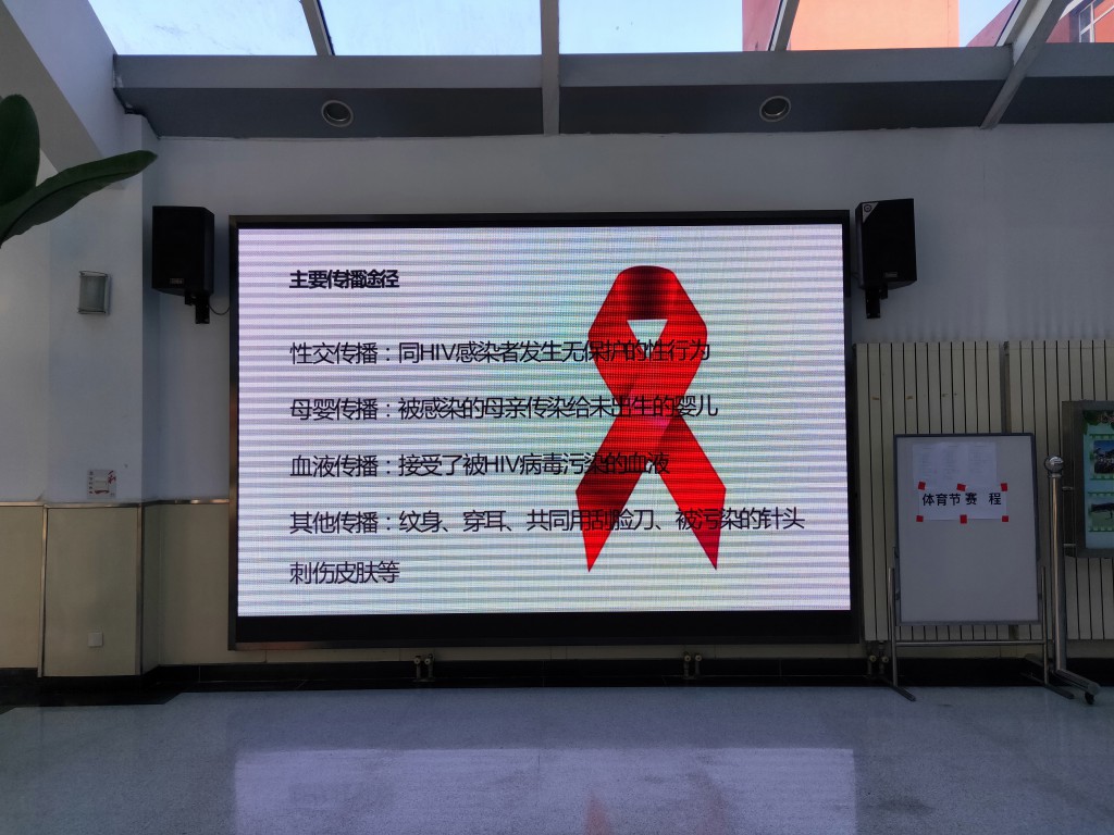 2019年12月1日是第32个“世界艾滋病日”,今年的宣传活动主题是“社区动员同防艾,健康中国我行动”。为了提高全体师生对艾滋病危害的认识,提高自身防护的能力,并能掌握和主动宣传基本的艾滋病防护知识,我校区特开展了“世界艾滋病日”系列宣传活动。对全校882名师生以广播、旗前讲话、电子显示屏滚动播出宣传ppt及活动主题的方式进行了艾滋病预防教育,全体师生认真学习,及时了解与掌握预防艾滋病的知识、增强自我保护意识和抵御艾滋病侵袭的能力,更重要的是培养了全体师生预防艾滋病的社会责任感、使命感。让我们一起行动起来,为自己,为家人,为社会构建一道坚强防线,预防艾滋,从我做起。