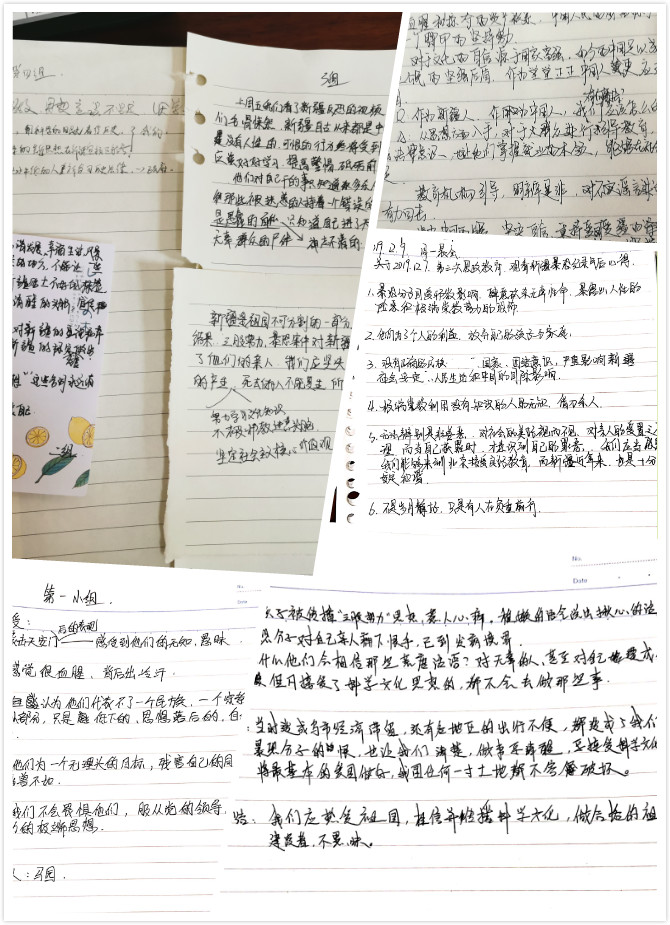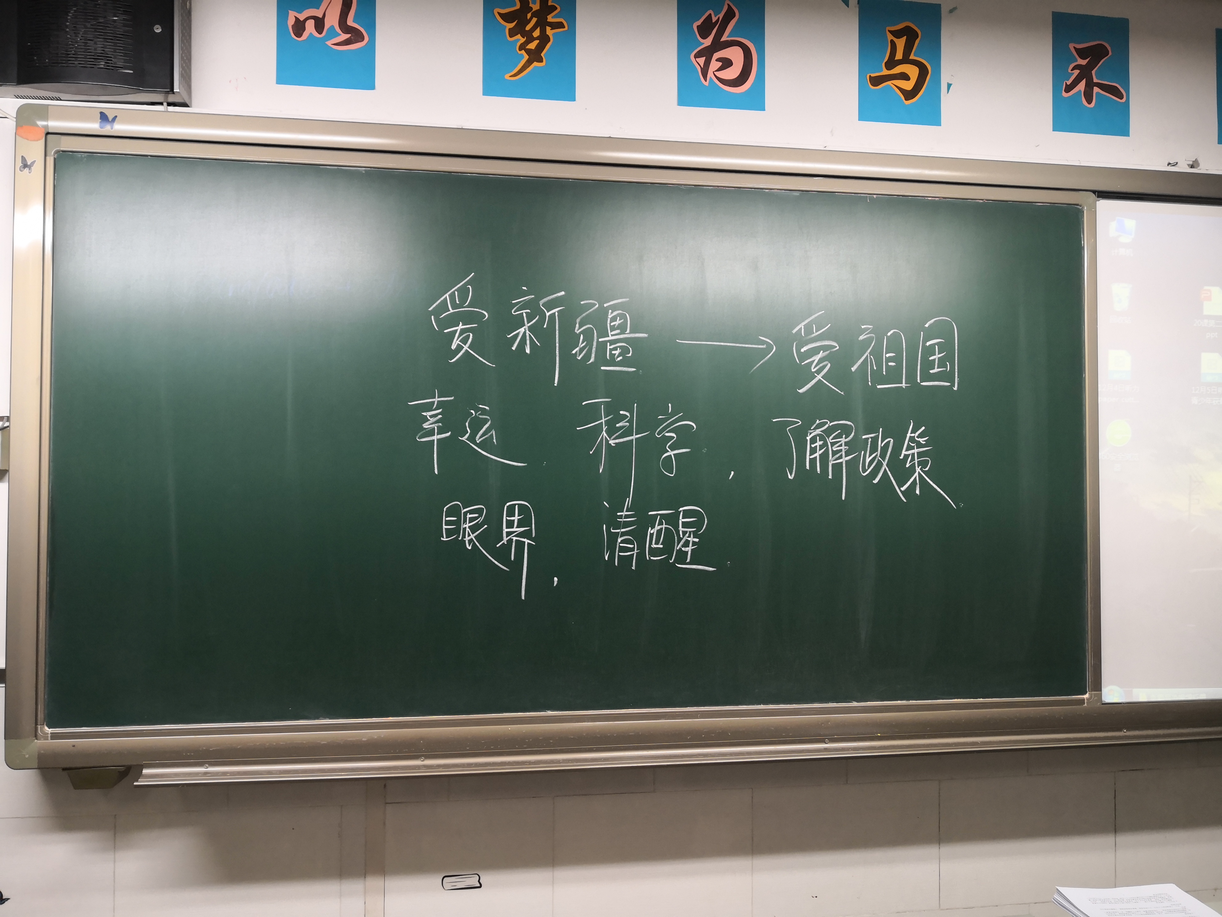 同学们一边分享着观看视频时的心情和恐惧,一边也在讨论着为三股势力的危害,也讨论了什么样的人容易被洗脑被收买去杀人放火,我们作为新疆人,作为内高班学生应该怎么做才是实实在在的爱疆爱党爱国。他们说,一是作为中国人,我们要团结一心,声讨和谴责别国对中国内政的野蛮干涉和肆意污蔑;二是作为党惠民政策的受惠一代,目前我们能做的是用心看世界,用脑好好学习和思考,用心用情做好边疆和内地沟通交流的桥梁,把我们在内地所感受的爱与关心、发展与变化都及时分享给疆内的亲朋好友;三是要敢于发声亮剑,不做含含糊糊的老好人和两面人,危害自己,危害社会;四是从我们各自家庭或者亲戚、邻居等看到的为了新疆稳定和反恐,每个家庭所付出的努力和辛苦,以及今天新疆来之不易的和平稳定和发展,作为高中生更应该珍惜来北京学习的机会,好好做人,好好学习,在感谢为我们创造和承担了“岁月静好”任务“负重前行”的人们的同时,也要充满感恩之心,努力成为像他们一样的人,不空喊口号,脚踏实地去爱国。