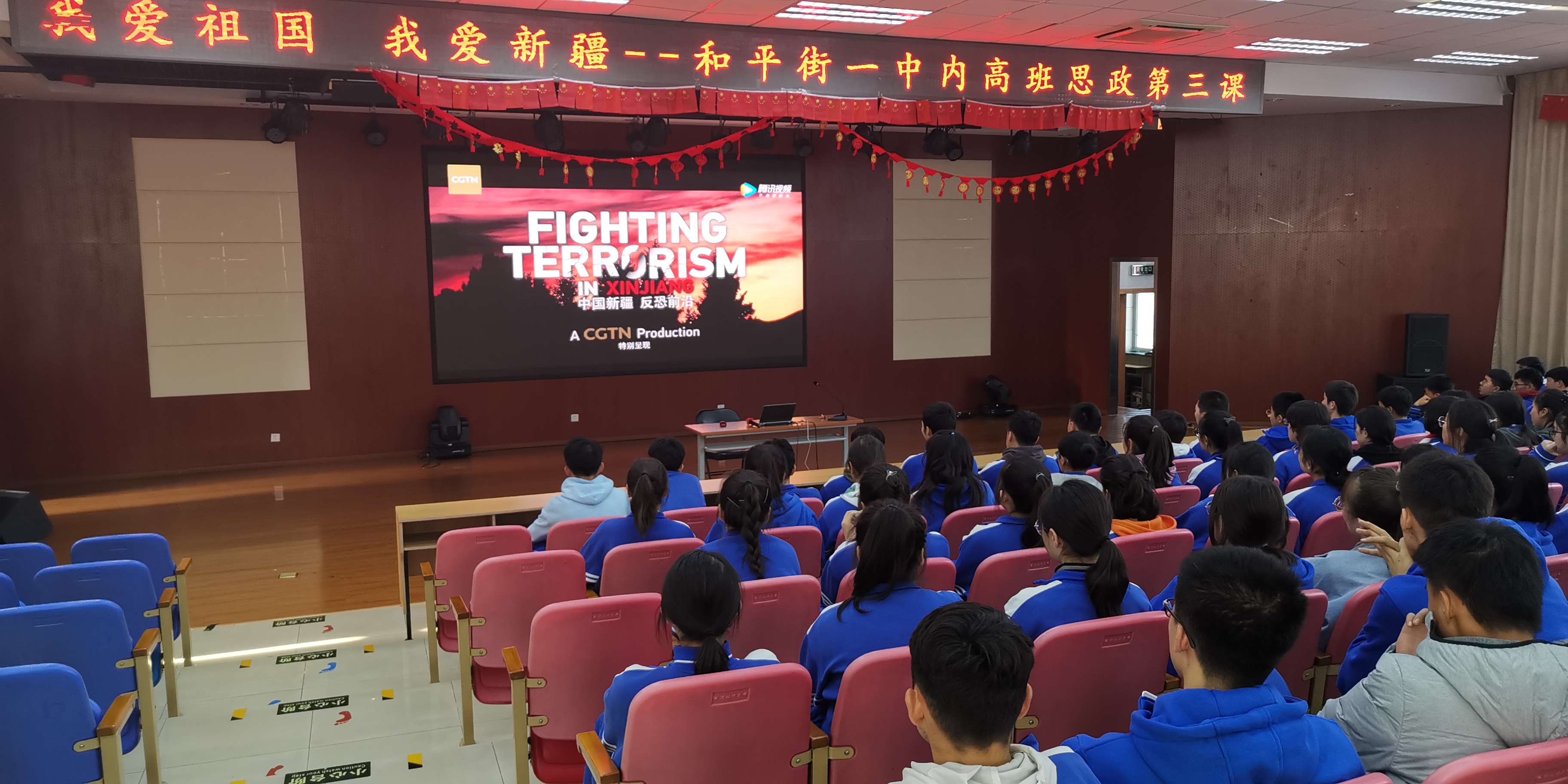 2019年12月7日,北京市和平街第一中学内地新疆高中班同学集体观看了CGTN(中国国际电视台)纪录片《中国新疆 反恐前沿》《幕后黑手——“东伊运”与新疆暴恐》,片中首次披露的新疆反恐斗争的真实画面和视频,让师生们都震惊不已。不少同学被纪录片中残忍暴力的画面所震惊,害怕的捂上了自己的眼睛,不少同学边哭泣边观看,视频内容对同学们触动很深。同学们对12月3日美国国会众议院通过所谓的“2019年维吾尔人去政策法案”感到非常气愤,纷纷谴责以美国为首的所谓“民主国家”罔顾事实,颠倒黑白的可耻和卑劣,对他们妄图干预我国内政,妄图分裂中国的卑劣行径进行声讨。学生发展处洪娟主任以“爱国爱疆落到实处”的讲座,引导同学们牢固树立“爱国爱疆志”,坚定赤诚“爱国爱疆心”,踏实落实“爱国爱疆行”。