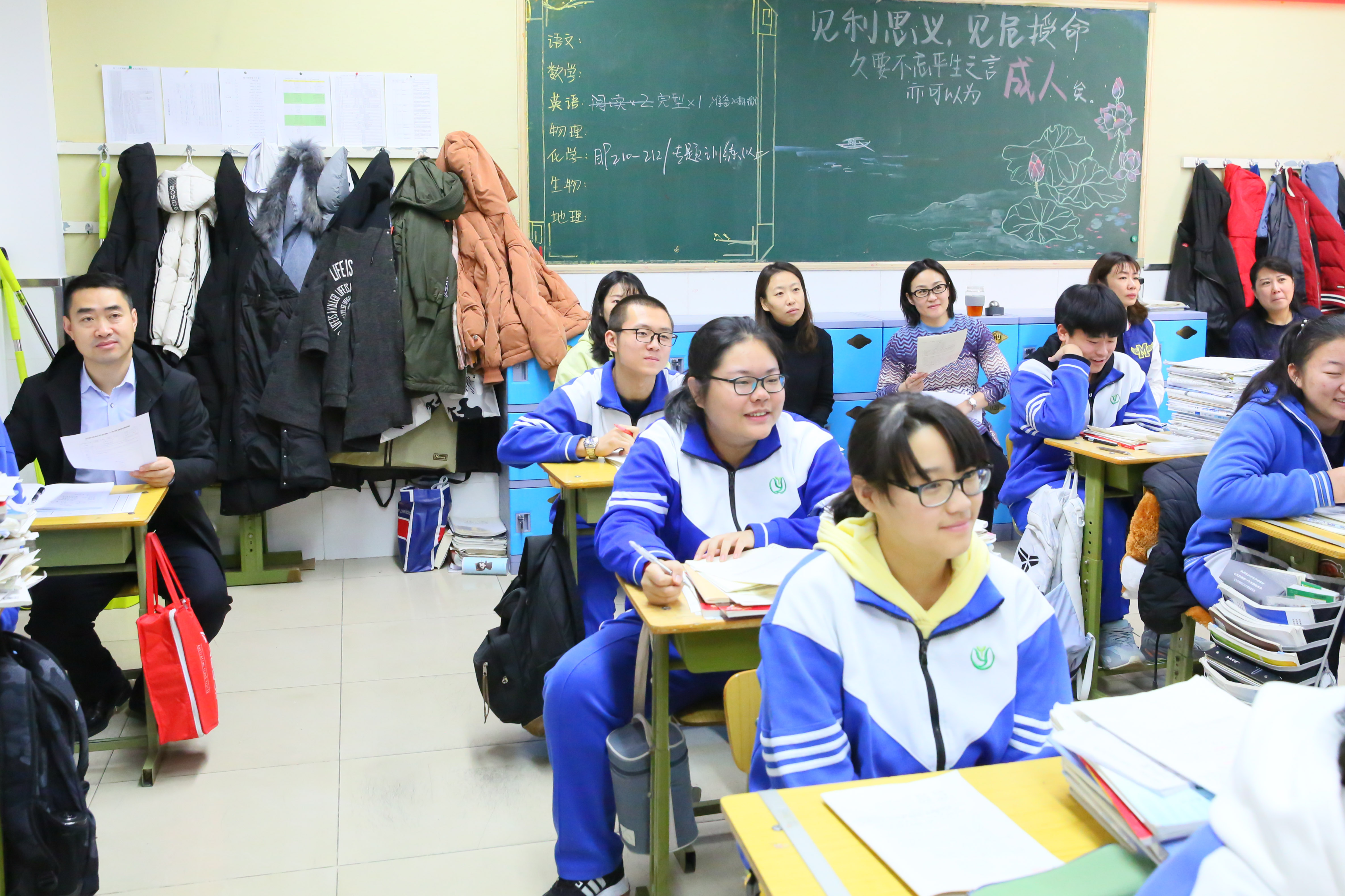 2019年12月12日朝阳区教研中心与基教二科到我校北苑莲葩园高中校区进行教育教学全面视导工作。基教二科李克明科长、教研中心兰俊耀主任及高中三个年级九个学科的教研员共同进行了听评课、教研组备课组活动情况调研、教学设计检查、学生作业布置情况抽查,以及德育活动开展情况调研等。