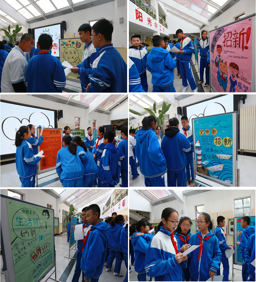 招新开始前,学生会各部精心设计招新宣传海报,并在初一年级进行广泛宣传。11月18日新一届学生会主席孙冠宇利用国旗下讲话时间开展学生会招新宣传。孙冠宇面向初一新生介绍了学生会部门组成,每个部的工作职责和招新要求。当天中午学生会各部聚集在朝来校区一层大厅热火朝天的布置招新展位,吸引初一新生前来咨询和报名。报名现场如火如荼,热闹非凡,学生会共收到近200份报名表。