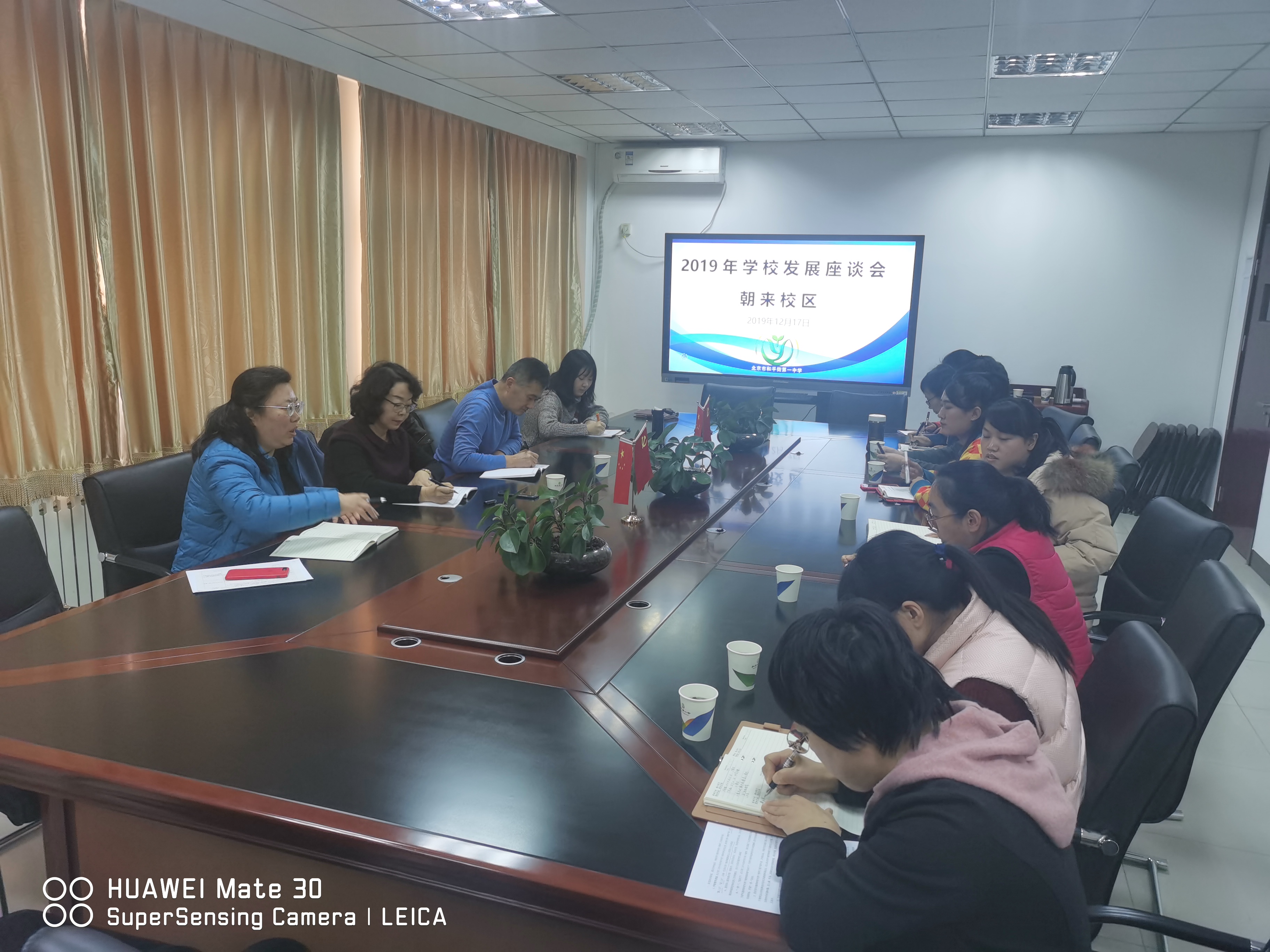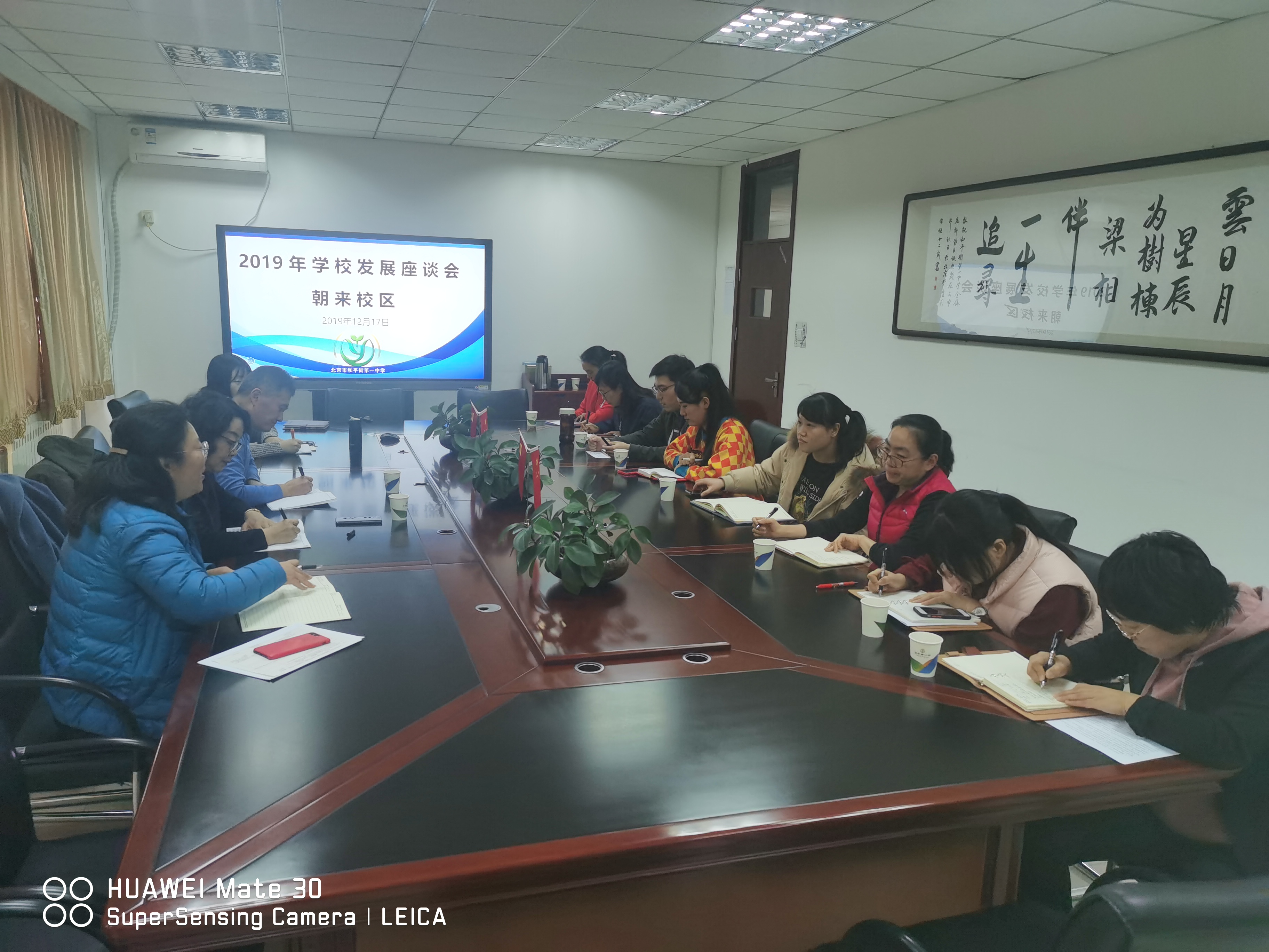 2019年12月17日,和平街一中朝来校区举办2019年学校发展座谈会。张景鲜副校长主持会议,陈秀珍校长和李兵书记参加了此次座谈会,听取老师们的心声和建议。
