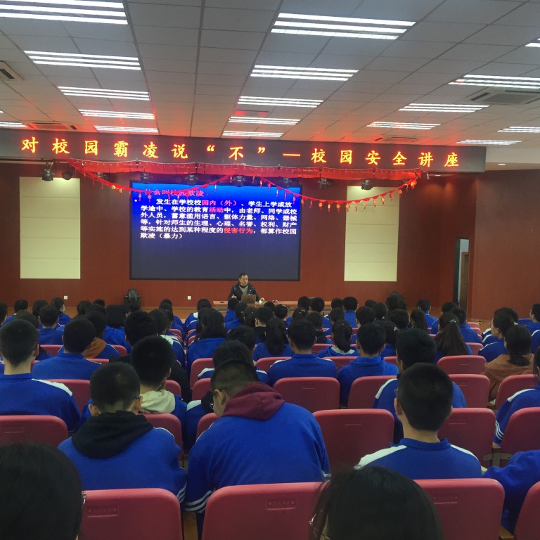 为预防校园霸凌,守护学生健康成长,12月17日下午, “对校园霸凌说不”校园安全专题讲座在五层阶梯教室举行,学生发展处王军主任担任主讲,高一、高二全体学生参加了此次讲座。