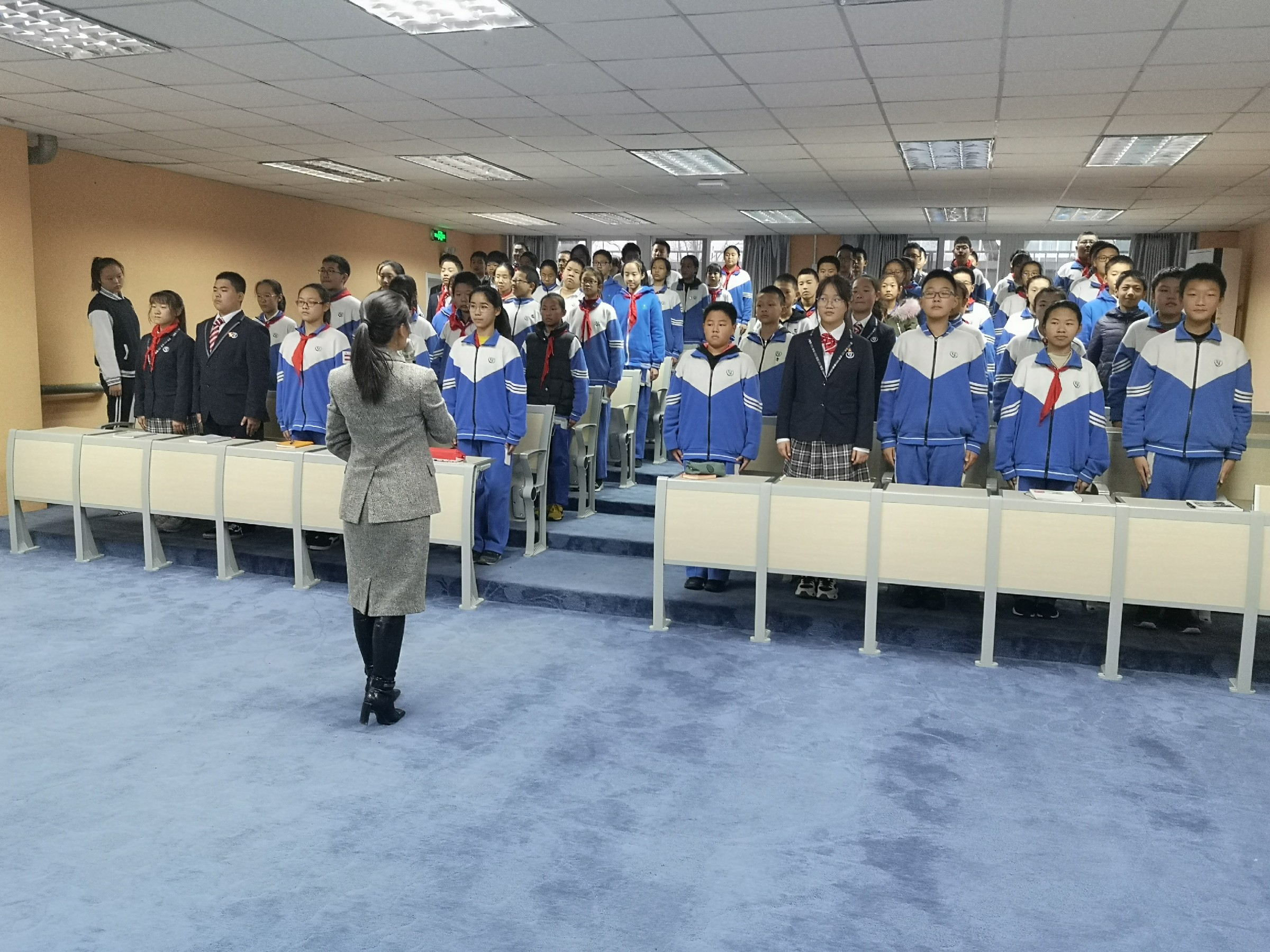 12月20日下午,奥运村校区全体学生汇聚在一层音乐教室,认真聆听徐老师的授课。徐老师以为什么要学习礼仪以及学习礼仪的重要性开始,她从如何微笑、站立、鞠躬等方面为同学们一一示范,现场为每一位同学纠正动作。徐老师还根据会场同学们的着装,进行了服饰搭配的简单培训。徐老师风趣幽默的语言和温文儒雅的举止深深吸引着全体同学,整个授课过程中,同学们积极与老师互动,行为举止的规范性有了很大的提高。