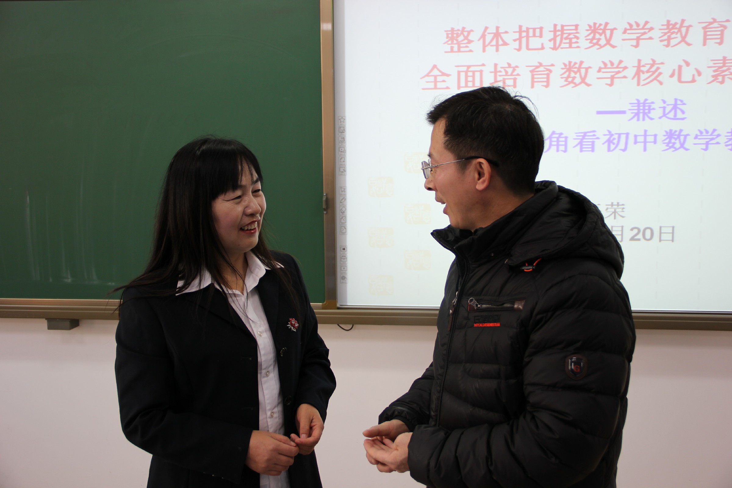 在评课环节,贾老师做了《整体把握数学教育、全面培育数学核心素养——兼述从高中视角看初中数学教学》的讲座。来自朝阳、东城、西城、昌平、大兴、密云各区的老师们积极发言,非常认可贾老师“以教学方式引领学生学习方式转变”的做法。老师们都说贾老师的学生是幸运的,选课老师更是幸运的,此行收获极大,愿意继续选贾老师的课,多向贾老师学习。