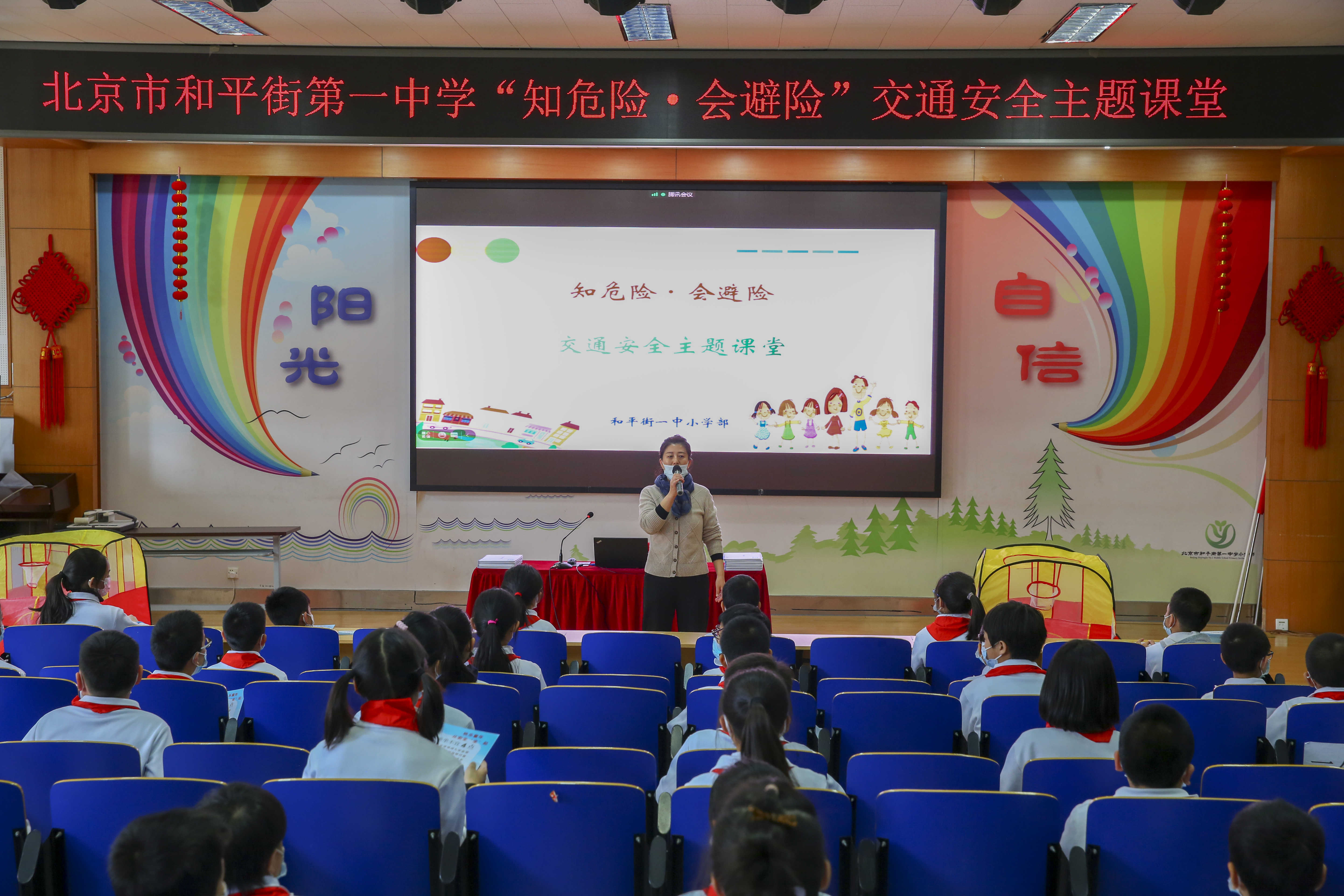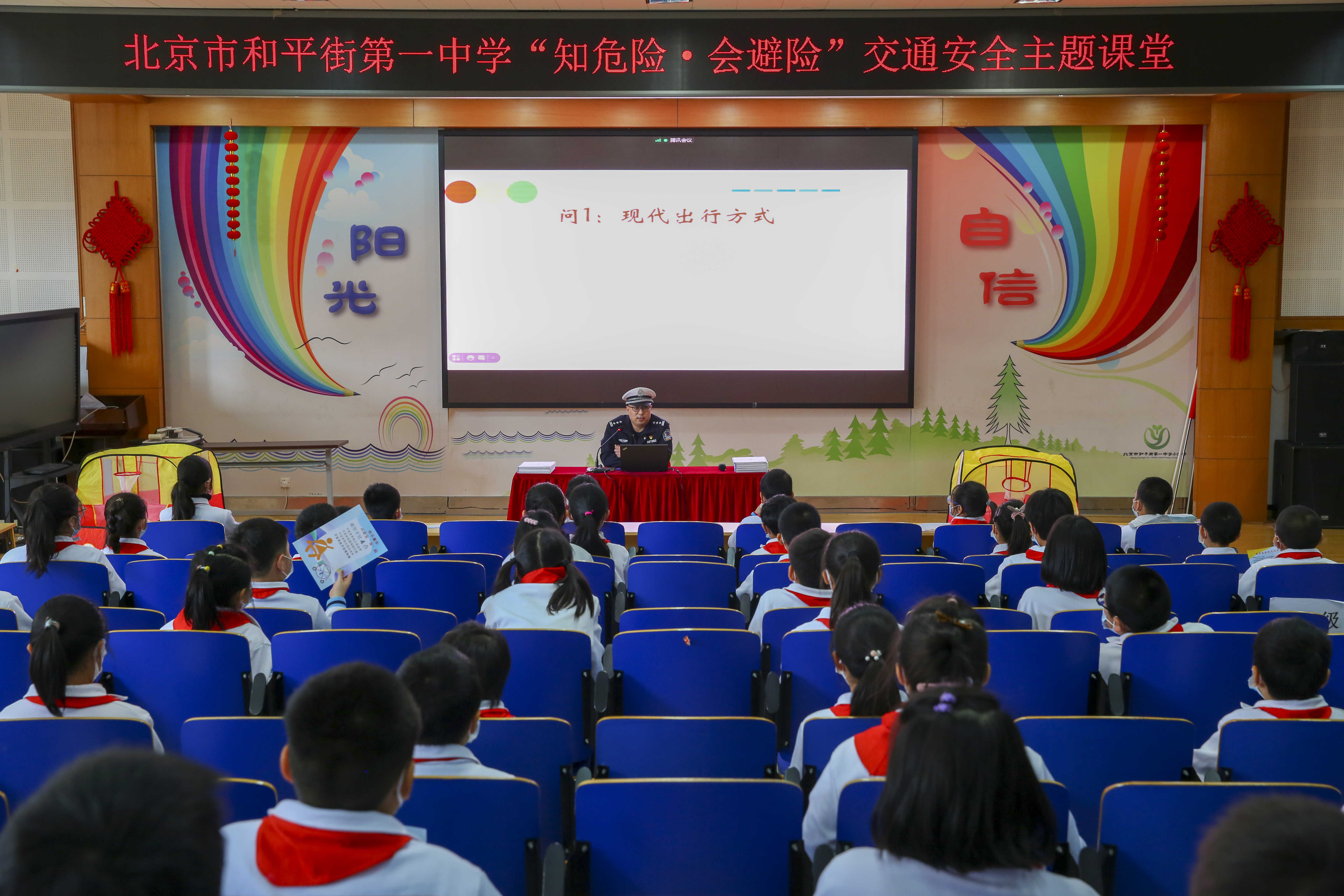 为使同学们进一步熟悉和掌握相应的交通安全法律常识,增强安全意识,学会懂得自我保护的方法,培养从小做起的好习惯,2021年3月22日下午,北京市和平街第一中学清友园校区积极开展交通安全出行主题教育活动,特聘请亚运村交通大队民警(和平街一中清友园法制副校长)李严鹏到校给全体学生进行道路交通安全培训。