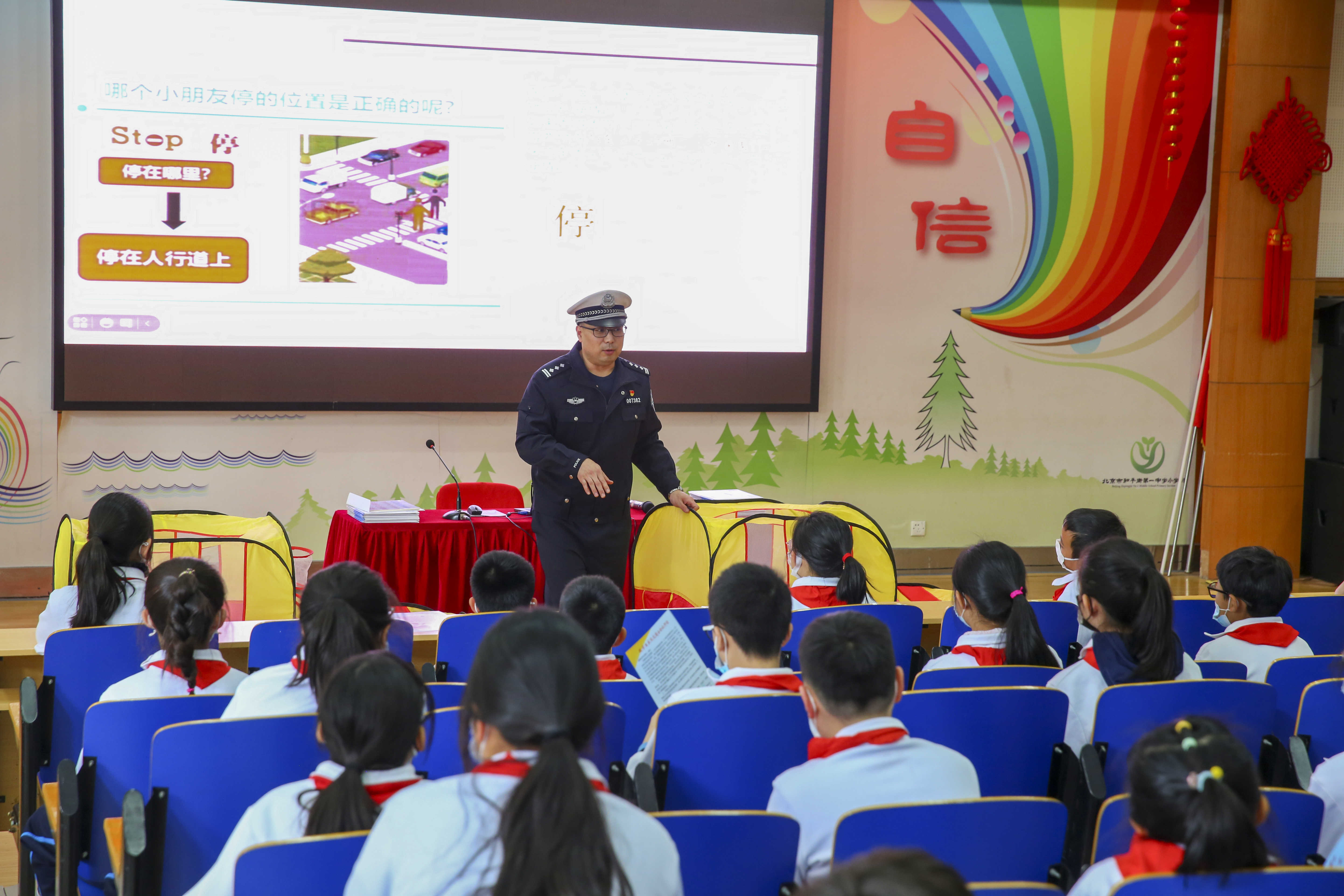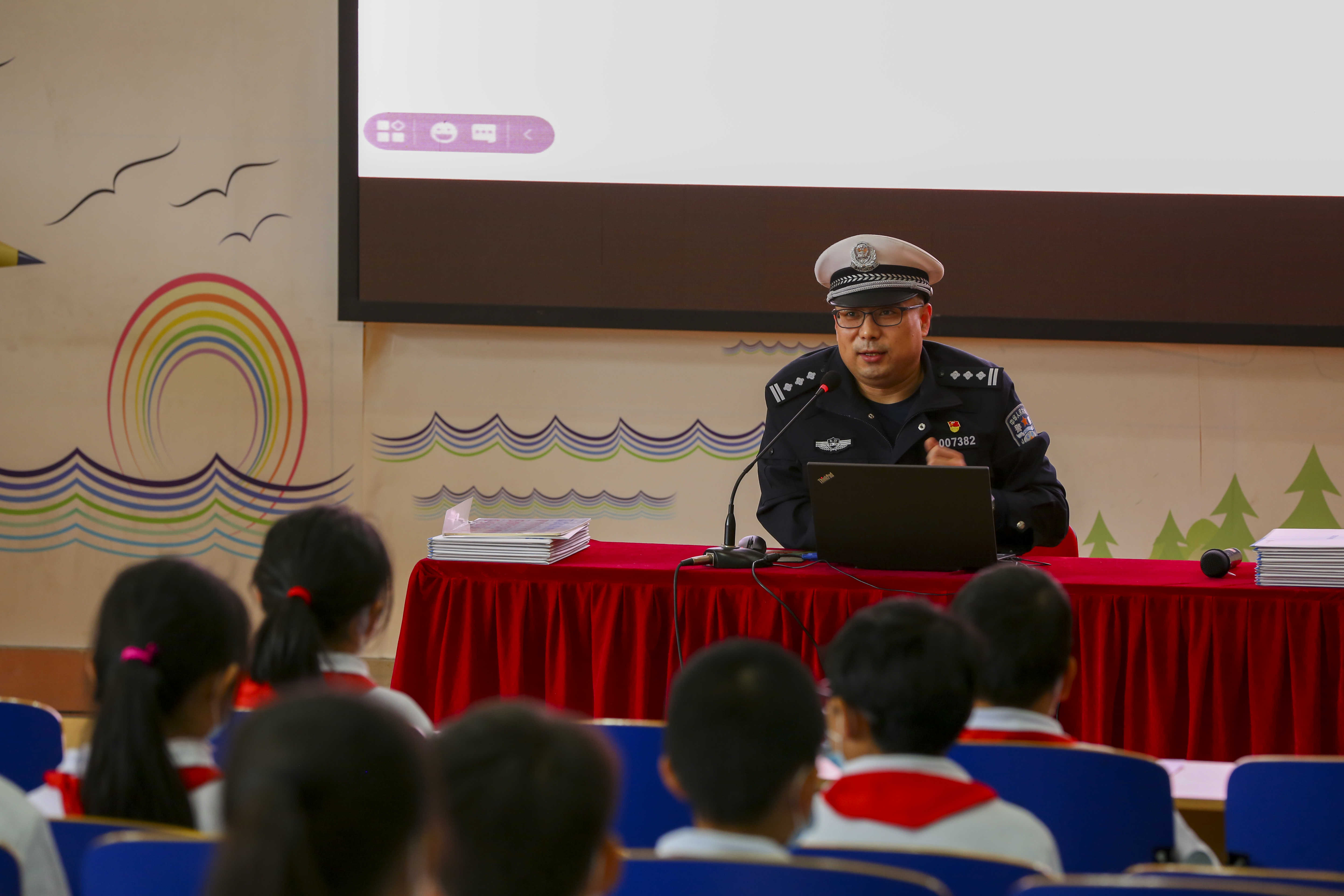 李警官首先向大家讲述了道路交通安全法的相关内容,强调了安全出行的注意事项,并针对小学生的实际情况,从知法、懂法到用法,
