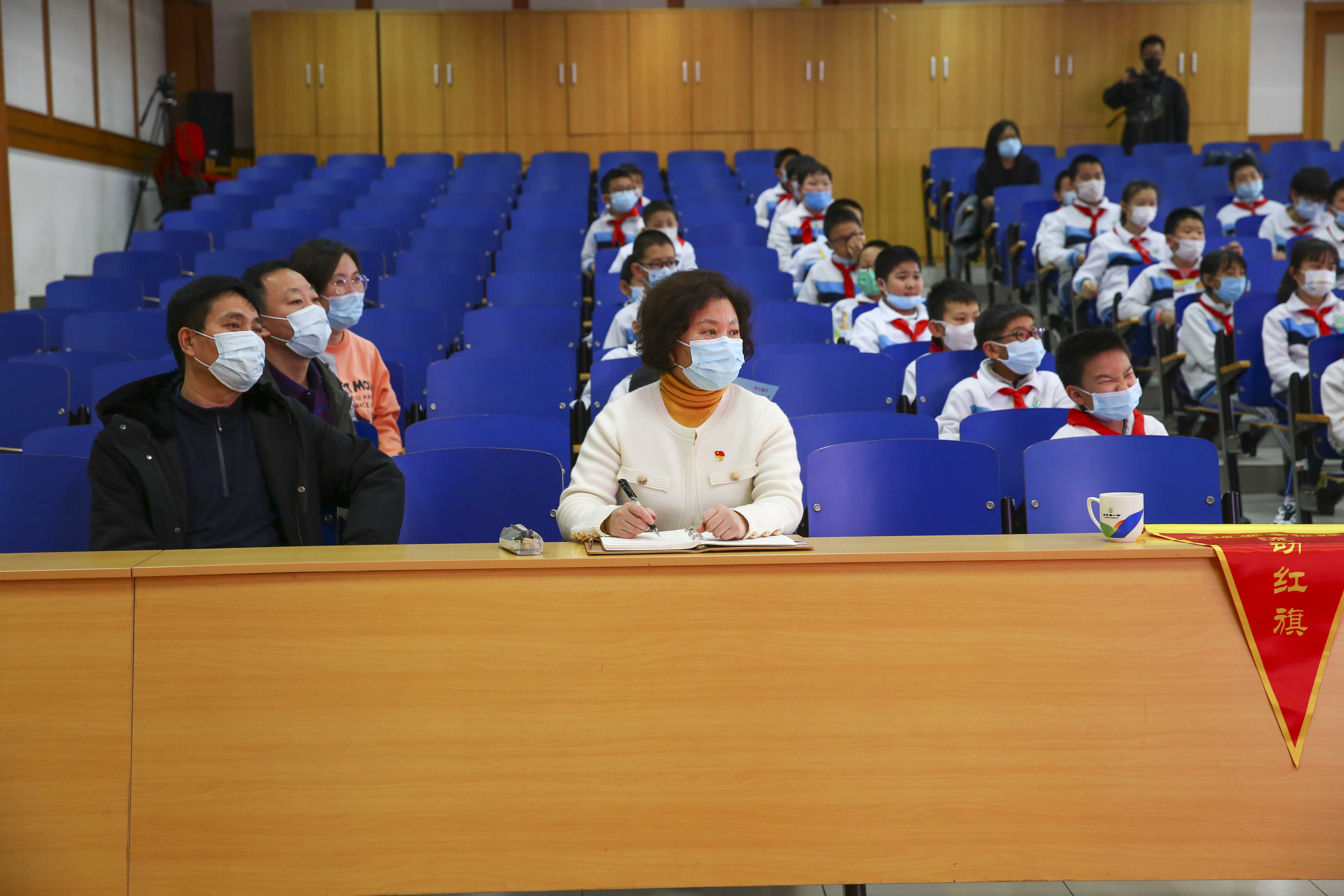 主题活动由德育主任何凤驰主持,校区主管校长殷桂萍、校区党支书蒋文杰、总务主任李波全程参与,三个班学生现场参与互动,其他班级进行线上收看。