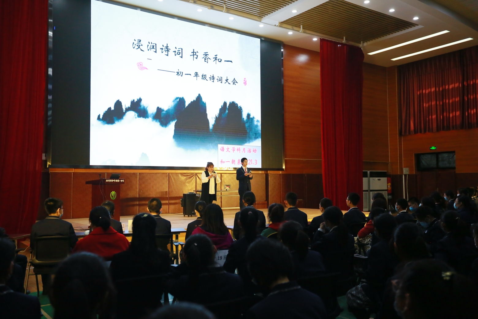 胜日寻芳泗水滨,无边光景一时新。朱熹以哲人的笔触写下了生机勃勃的春天。春天是一年的开始,春天是耕种的季节,为全面提高学生的语文综合素养,激发学生读诗品诗的热情,庆祝建党100周年,3月30日下午和平街第一中学朝来校区开展了初一语文学科月展示活动——第一届诗词大会,在学生们的内心撒下了诗意之种。