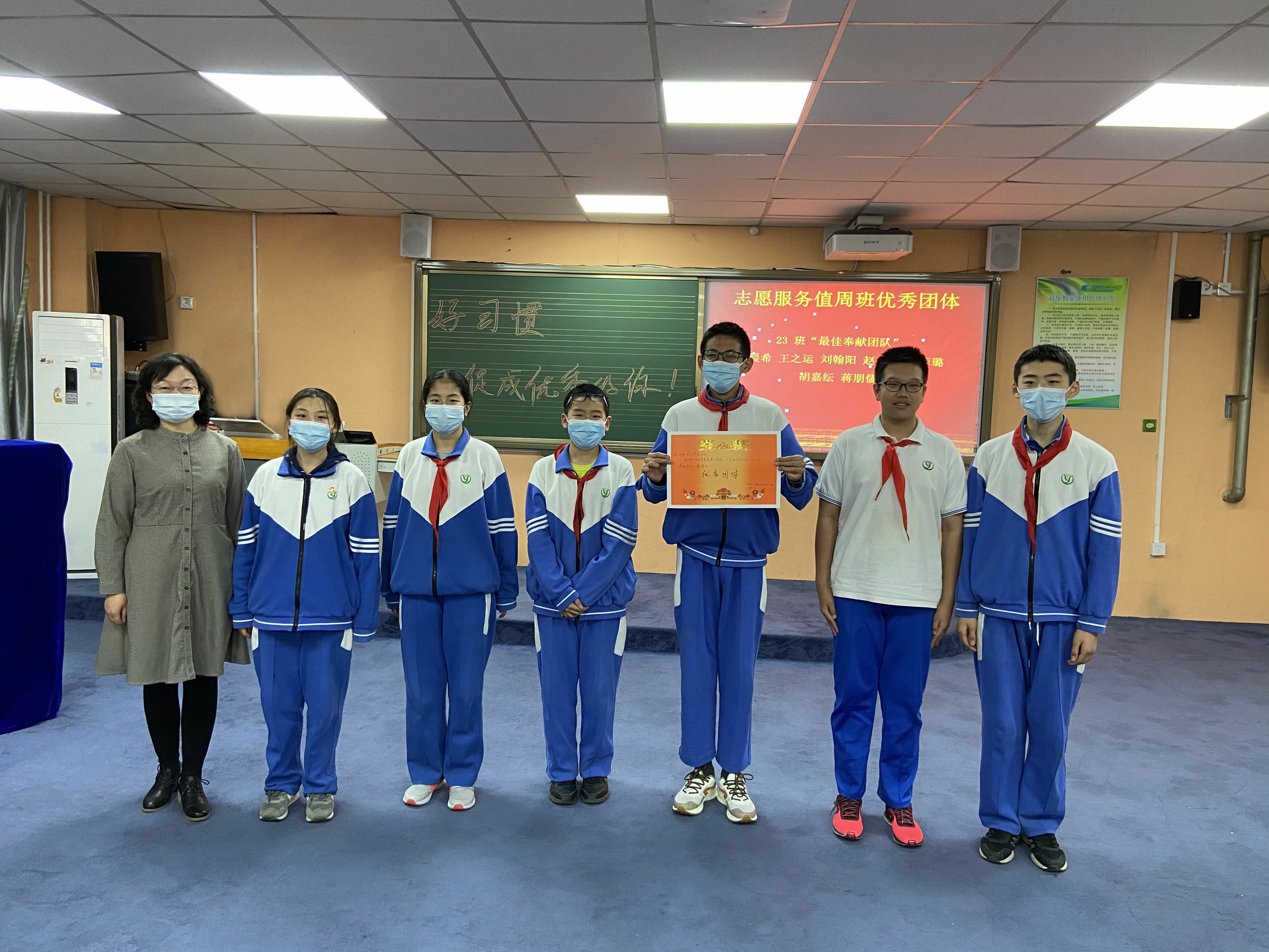 志愿者是奉献爱心的一颗颗小星星。有了爱心与助人为乐的精神,无处不有团结友爱的故事。初一(23班)班主任董佳琦老师对初一年级的志愿服务活动进行总结和表彰。