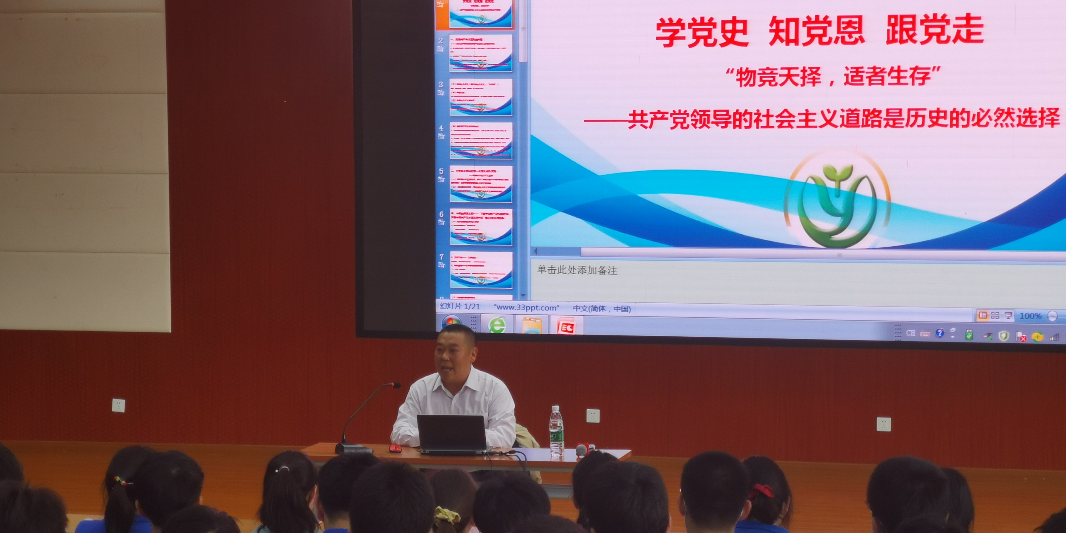 在伟大的中国共产党建党100周年之际,在“十四五”开局和全面建设社会主义现代化国家新征程开启之年,围绕“立德树人”育人目标,继续深入落实马克思主义“五观”“五认同”教育,引导我校内地新疆高中班同学形成浓厚的“学党史 感党恩 跟党走”氛围,厚植爱国爱党爱疆的情怀,4月10日,由张东辉主任做了主题为“物竞天择,适者生存——中国共产党领导的社会主义道路是历史的必然选择”专题讲座,拉开了我校庆祝中国共产党建党100周年系列活动的序幕。