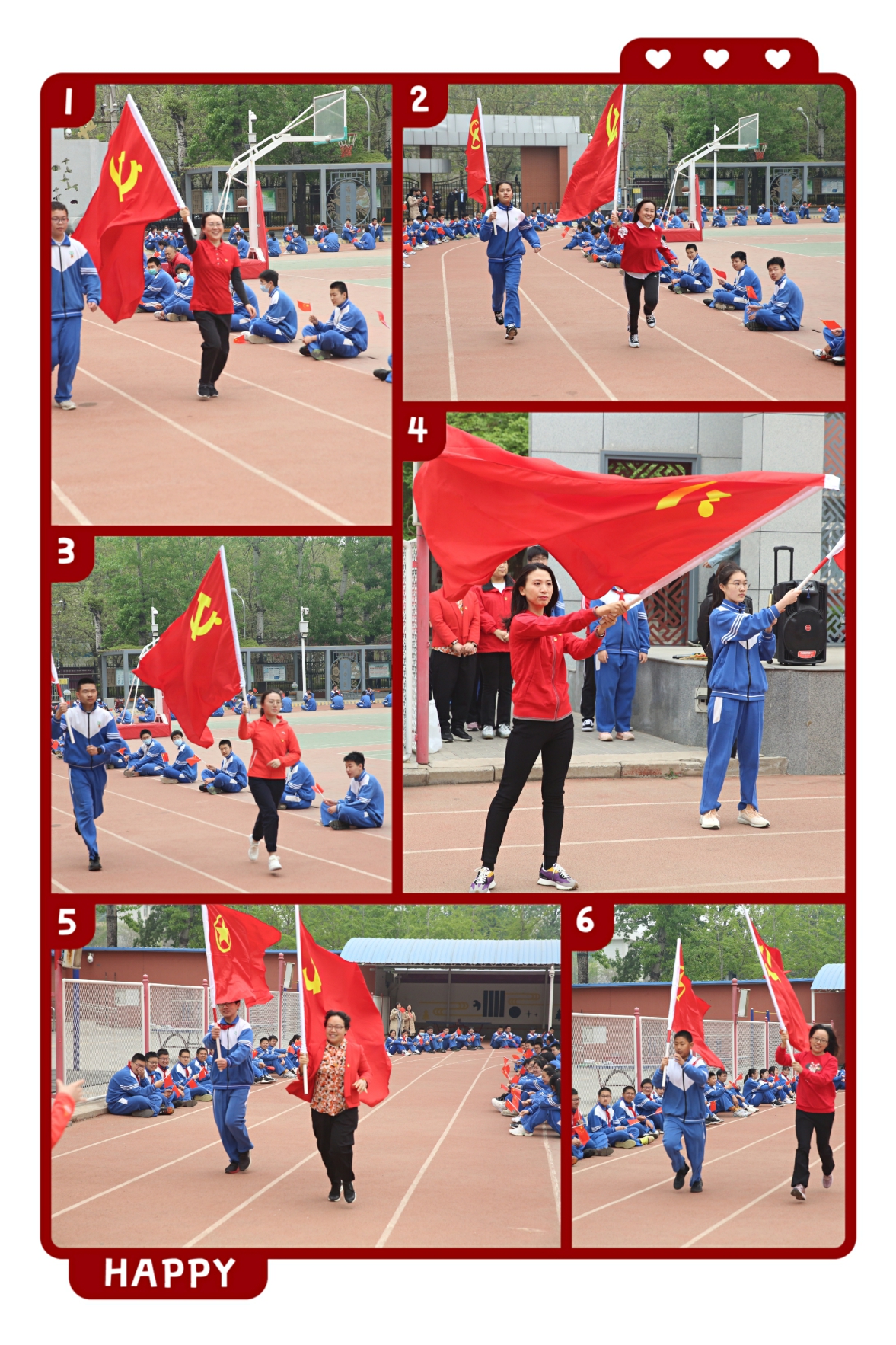 活动在庄严的国歌声中拉开序幕,校区党支部书记邹小刚副校长宣布启动仪式开始。有着20年党龄的历史学科李艳兰老师为我们讲述了中国共产党的故事。初一年级280名学生通过2个小时的彩排,利用翻花组成1921、2021和100字样,并在组字过程中声音洪亮地喊出“1921,不忘初心;2021,牢记使命;建党100年,吾辈当自强”的口号。随后,我校区12名党员教师代表、12名团员和少先队员代表,分别手举党旗和团旗,共同完成接力跑活动,寓意将革命精神薪火相传。初二和初三年级以及党员教师,组成了国旗小方阵,让校园处处洋溢着庆祝建党百年的气息。