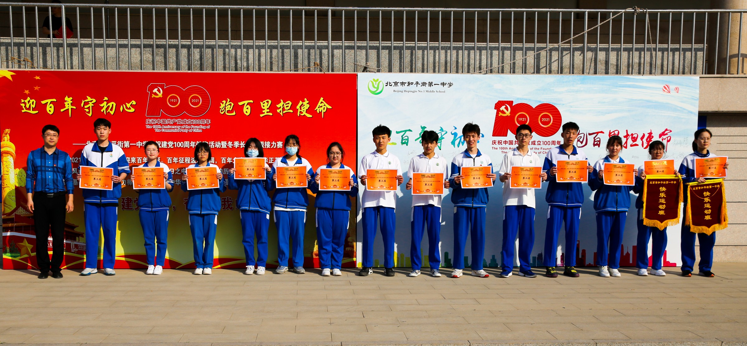 2021年是中国共产党成立100周年,为庆祝共产党百年华诞,加强对学校师生进行爱国主义思想教育,促进师生身心健康发展。北京市和平街第一中学莲葩园校区开展了庆祝建党100周年健跑暨冬季长跑终极接力赛活动。