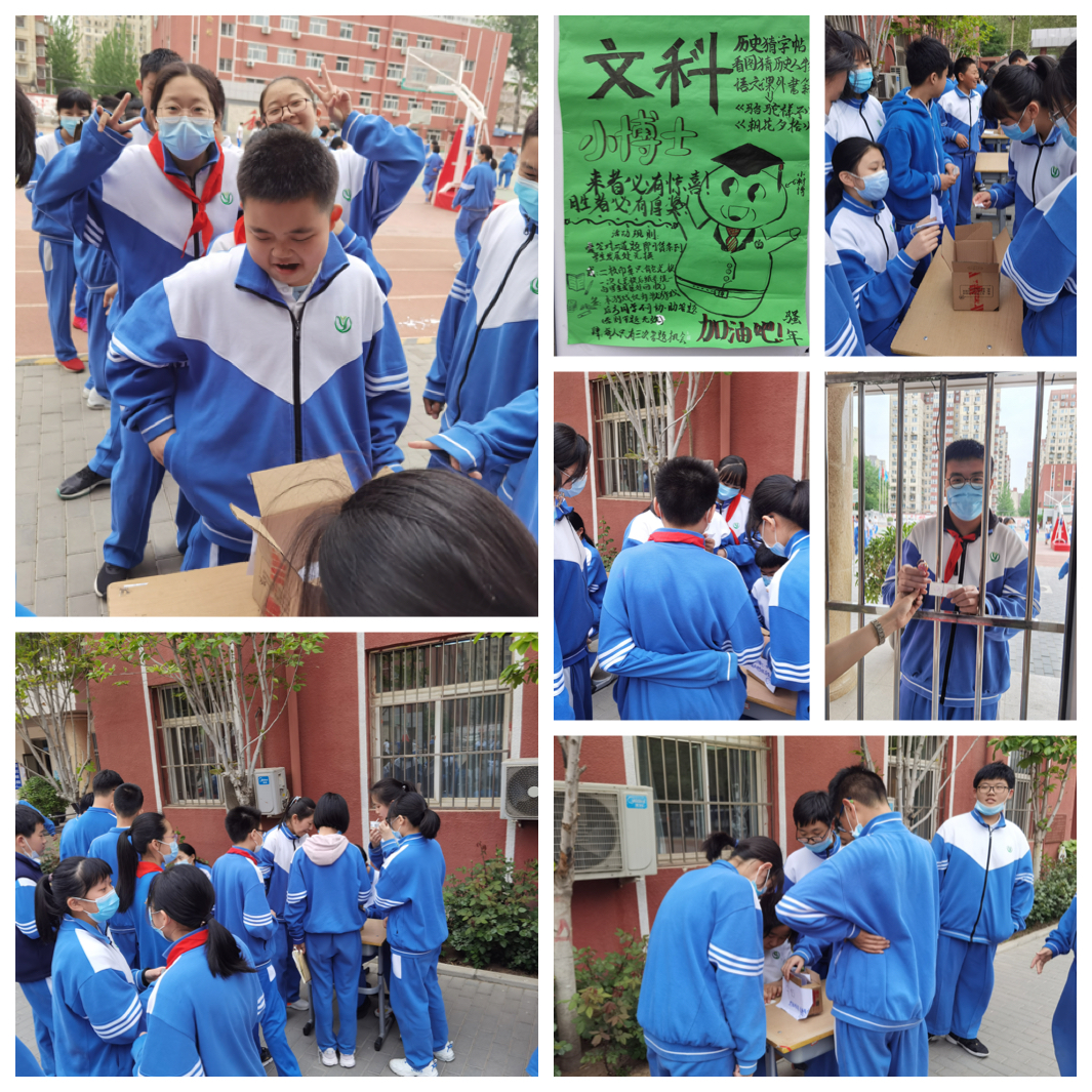 4月份,又有两个班级为和平街初中校区的同学们组织了校园活动,这样的活动形式得到了学生们的喜爱与支持,早早就来到场地里等待参与活动。他们读着海报上的规则,听从志愿者的安排,开动脑筋回答问题,场面好不热闹。