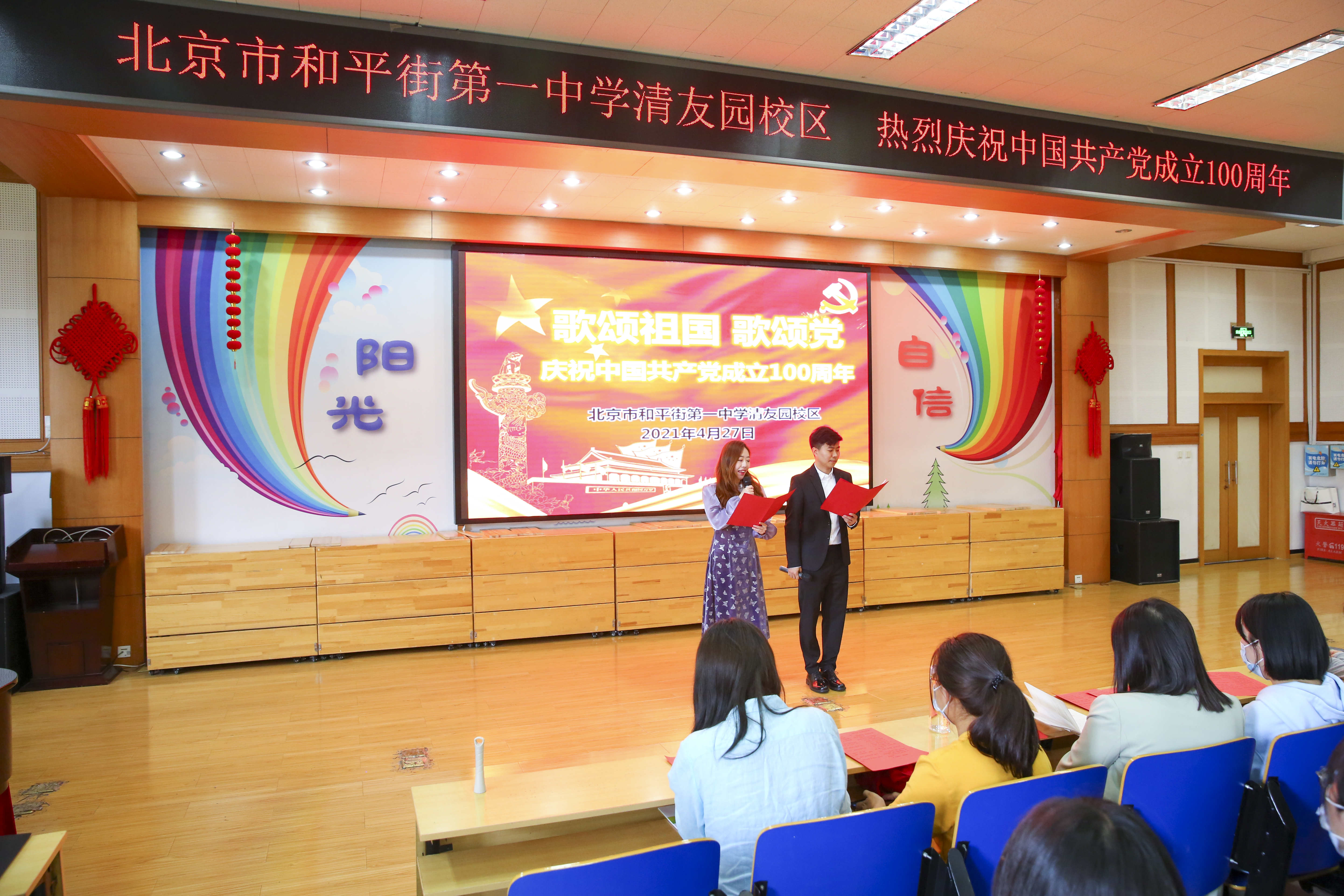 2021年4月27日下午,北京市和平街第一中学清友园校区迎来了一场文化盛宴——“歌颂祖国 歌颂党”庆祝我们伟大的中国共产党建党100周年。