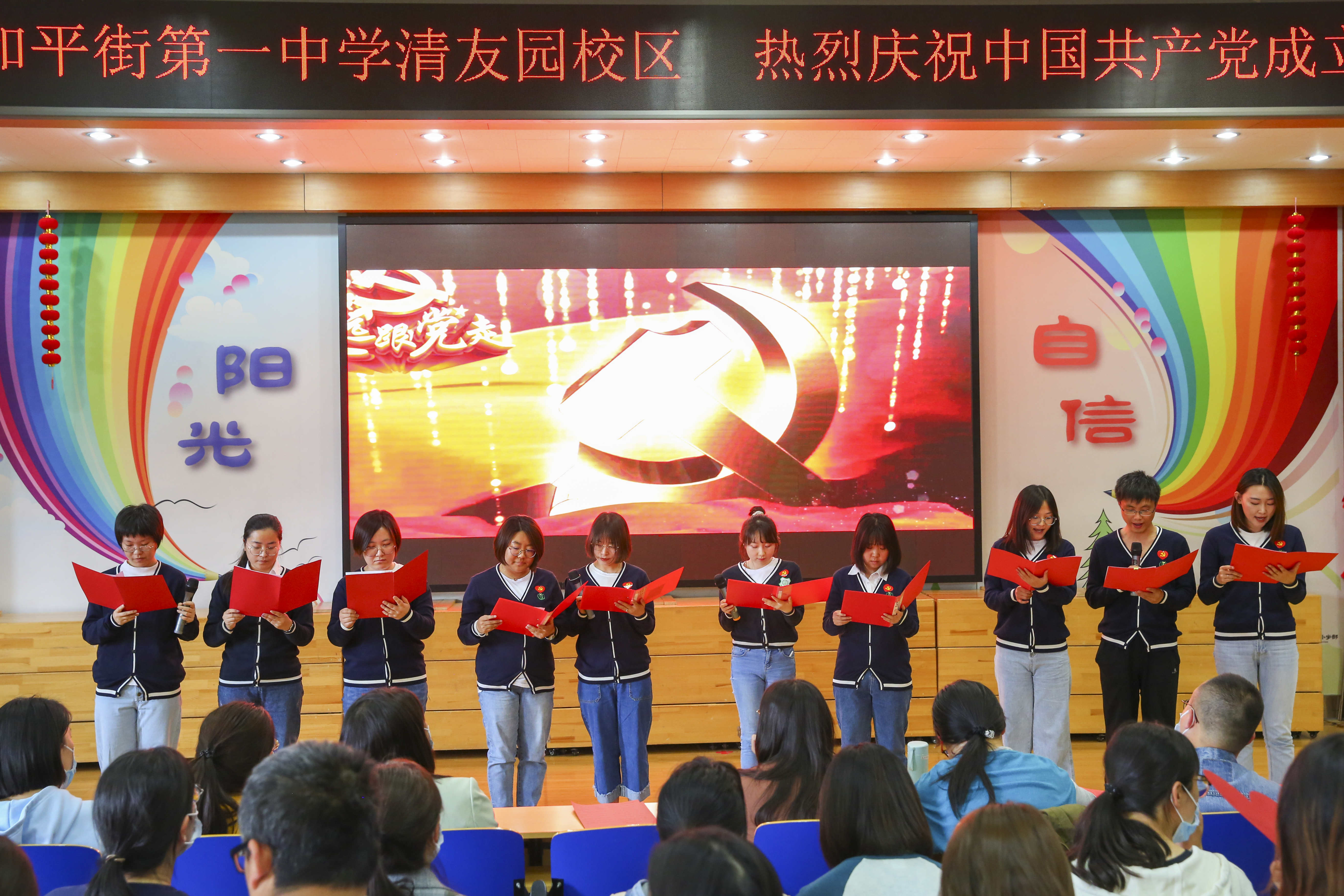 一段段心潮澎湃的朗诵、一首首深入人心的歌曲带领老师们一同穿越历史的烽烟,重温了中国共产党的光辉历程,回顾了老一辈共产党人的峥嵘岁月,讴歌了为民族独立和人民解放而英勇奋斗的伟大精神,在时代的乐章里唱响“和一人”的赤诚与豪迈。庆祝活动精彩纷呈、鼓舞人心,“和一人”将不忘初心、牢记使命,传承先辈们的革命精神,发扬敢闯敢试、敢为人先、埋头苦干的“和一”精神。演出最后,干部组来带的诗朗诵《读中国》将全场气氛推向高潮,伴随着《我爱你中国》这首气势恢宏的红色经典歌曲,庆祝活动圆满落下帷幕。