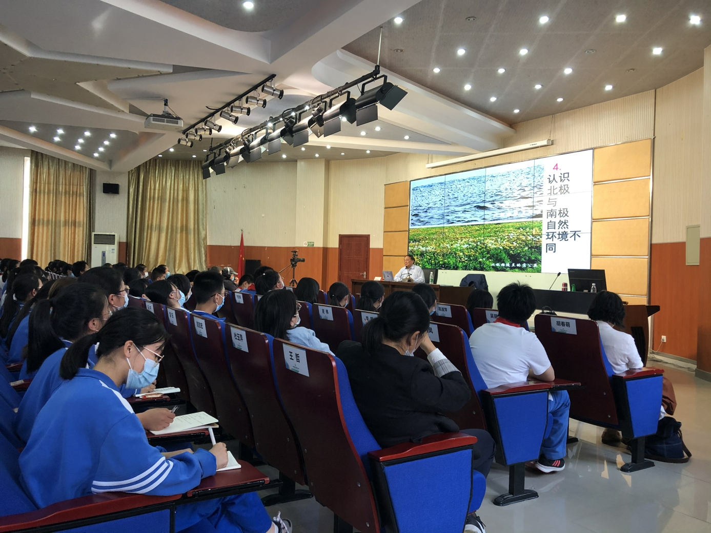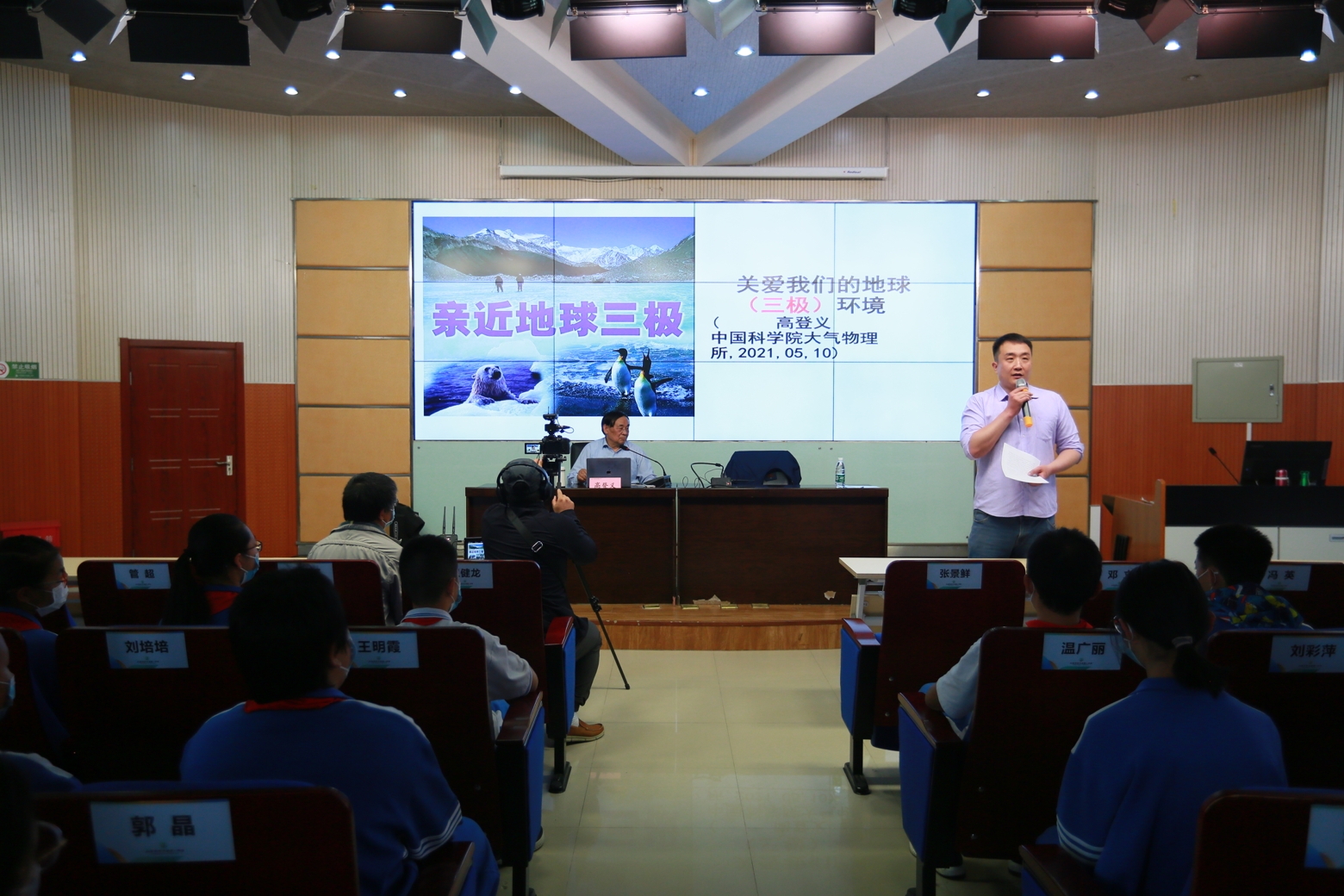 为了融合科教资源、精准服务基地校需求,,北京青少年科技中心、北京科学中心特组织“院士专家讲科学”进校园活动。2021年5月10日下午,中国科学院大气研究所研究员、博士生导师高登义教授受邀为和平街一中朝来校区师生作了主题为“关爱我们的地球环境,走进地球三极”的科普知识讲座,现场近200名师生共同聆听,一起走进科学世界,探秘我们可爱的地球家园。活动开始前,北京青少年科技中心赵峥科长向在场师生隆重地介绍了高登义教授,并表示希望同学们通过聆听讲座能够关注地球环境,保护我们的美丽家园。
