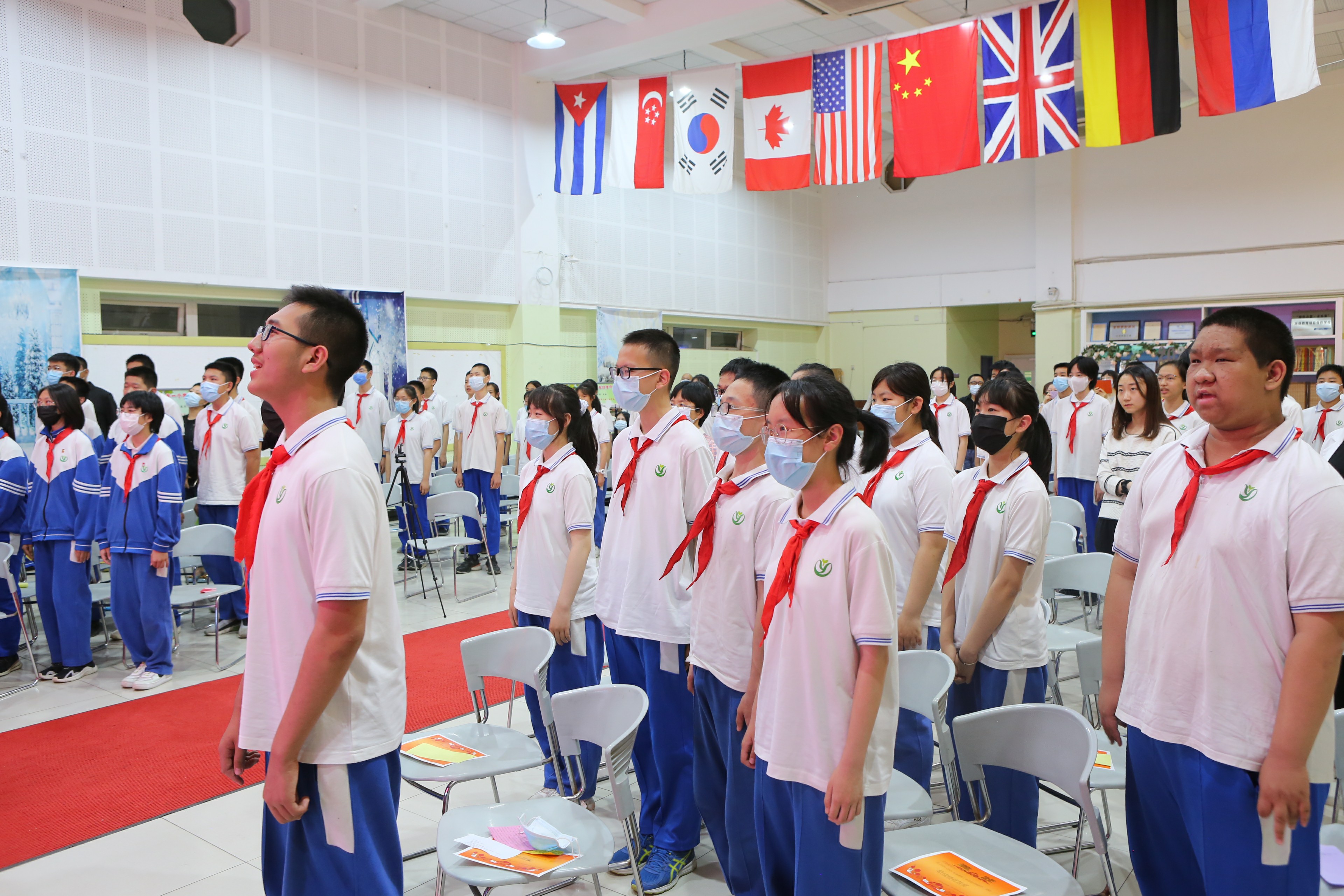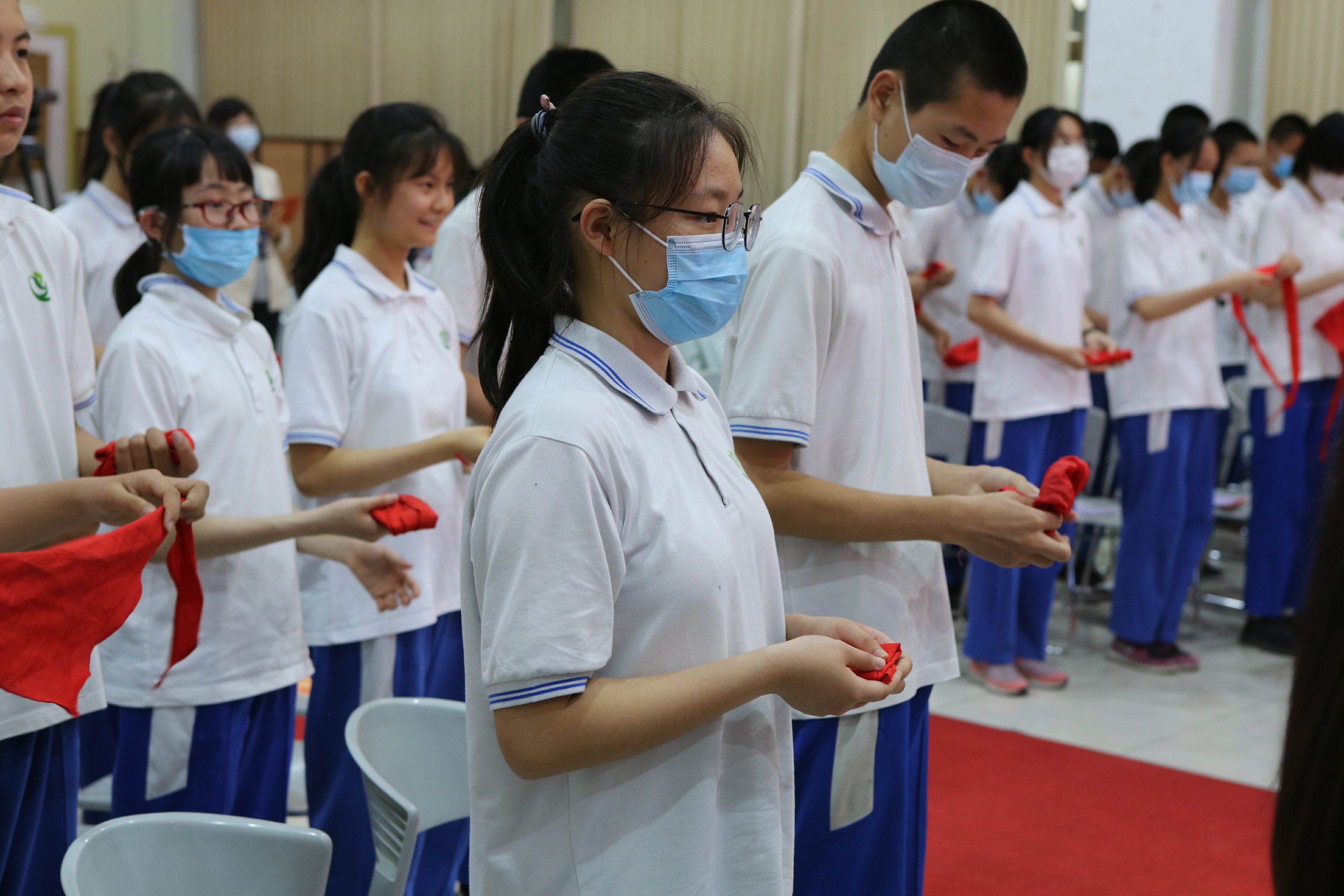 “我们是共产主义的接班人,继承革命先烈光荣传统,爱祖国,爱人民……”初二年级全体学生最后一次唱响《中国少年先锋队队歌》,庄严地摘下红领巾,进行离队仪式。同时,8名同学光荣地成为入团积极分子。他们分别分享了团的基本知识、党的百年发展历程中优秀青年故事,他们将带领全体学生在人生的新起点上,当好先进青年,不断实践,担起新时代赋予的责任,用青春践行中国梦!