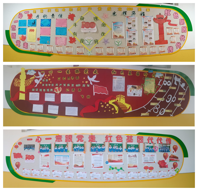 百年征程波澜壮阔,百年初心历久弥坚。为庆祝中国共产党百年华诞,奥运村校区开展了以 “一心一意跟党走,红色基因代代传”为主题班级壁报展示活动。
