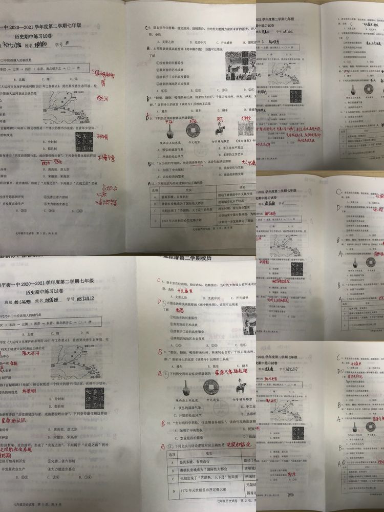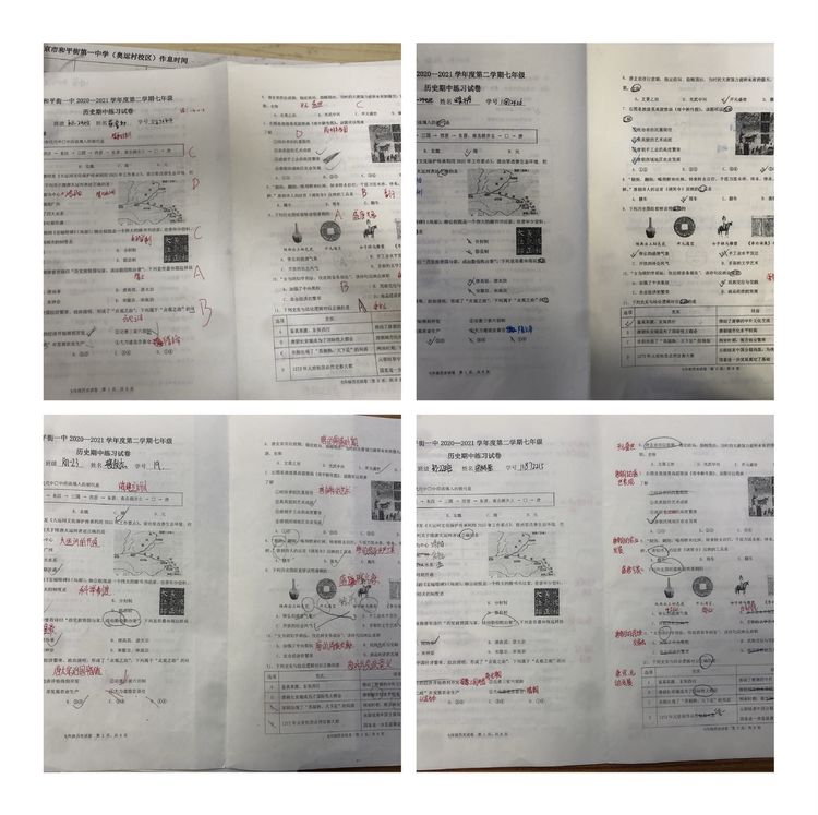 历史学科教师则重视学生对试卷的逐题分析,指导学生重新审视期中检测试卷,写出每道题考查的知识点,并据此明确自己下阶段的学习重点。