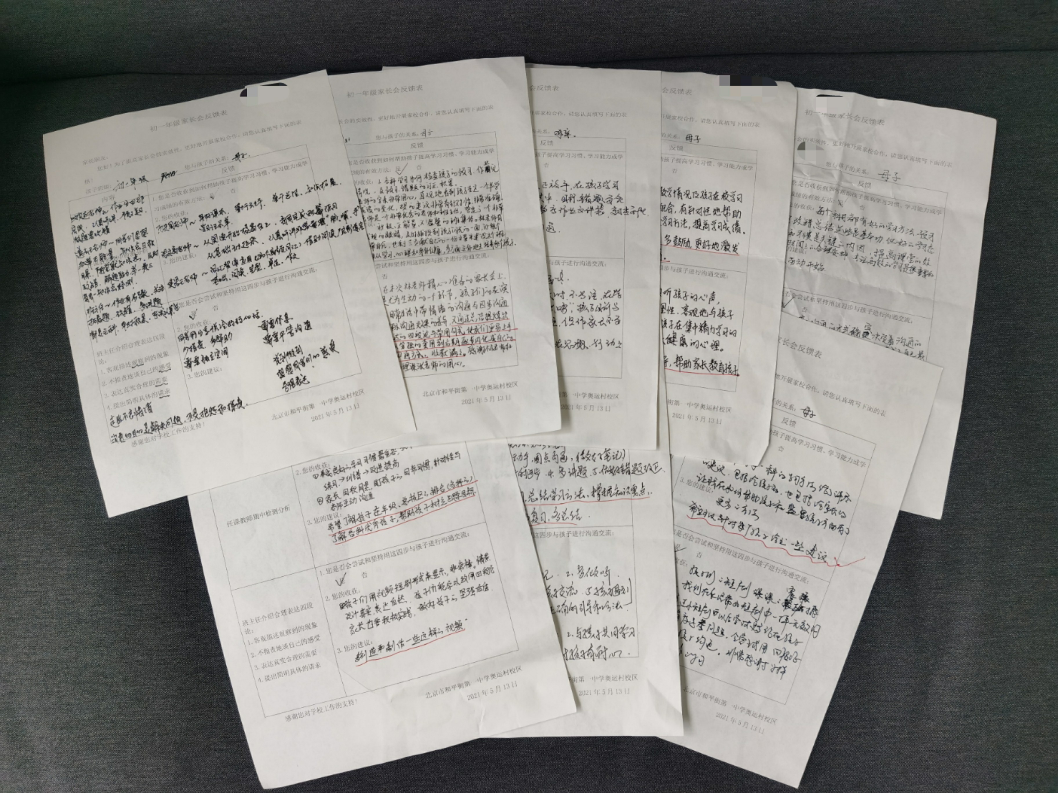会后,家长们在反馈表上纷纷表示收获颇丰,了解了如何帮助孩子提高学习能力和学习成绩,培养良好学习习惯的具体方法;学习到“合理表达四段论“的具体步骤,会和孩子们一起坚持尝试。家长们在反馈表上写道:”感觉各科老师都在为孩子们用心制定适合有效的学习方法,为孩子们遇到如此优秀负责的老师感到庆幸。“”了解到优秀孩子的学习态度,看到优秀作业展示,会认真审视自己孩子的问题和差距。“”通过学生表演情景剧的形式,让家长了解合理表达四段论,形式新颖易于接受“”以前忽略了沟通方式,导致效率不高,需要尽快调整“。