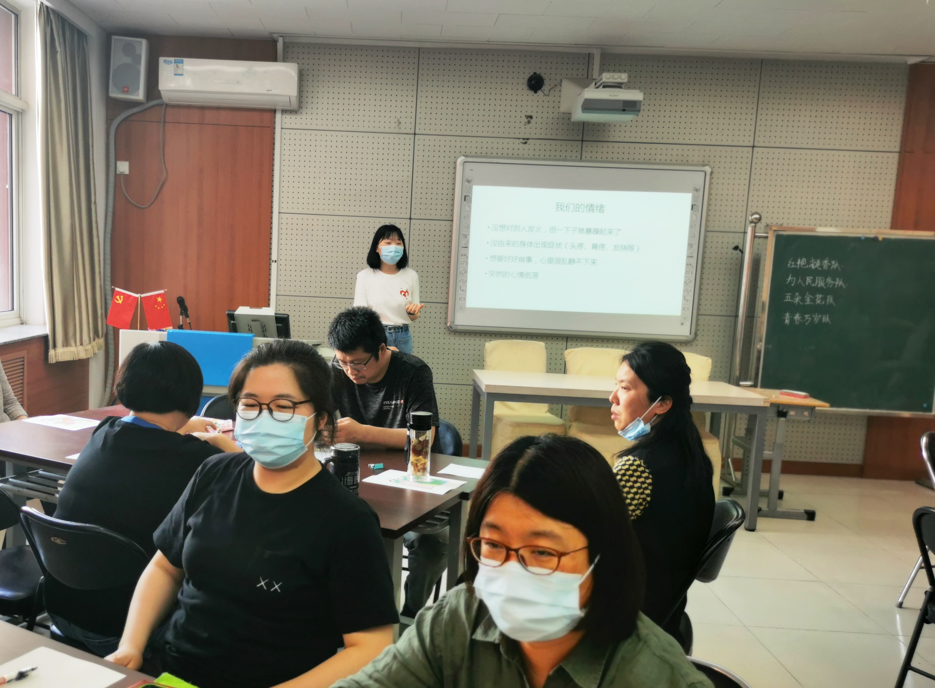为缓解班主任工作压力,促进身心健康,提高班主任的幸福感,更好地对学生进行心理健康教育,2021年5月18日,和平街一中朝来校区举行班主任减压团体心理辅导活动。