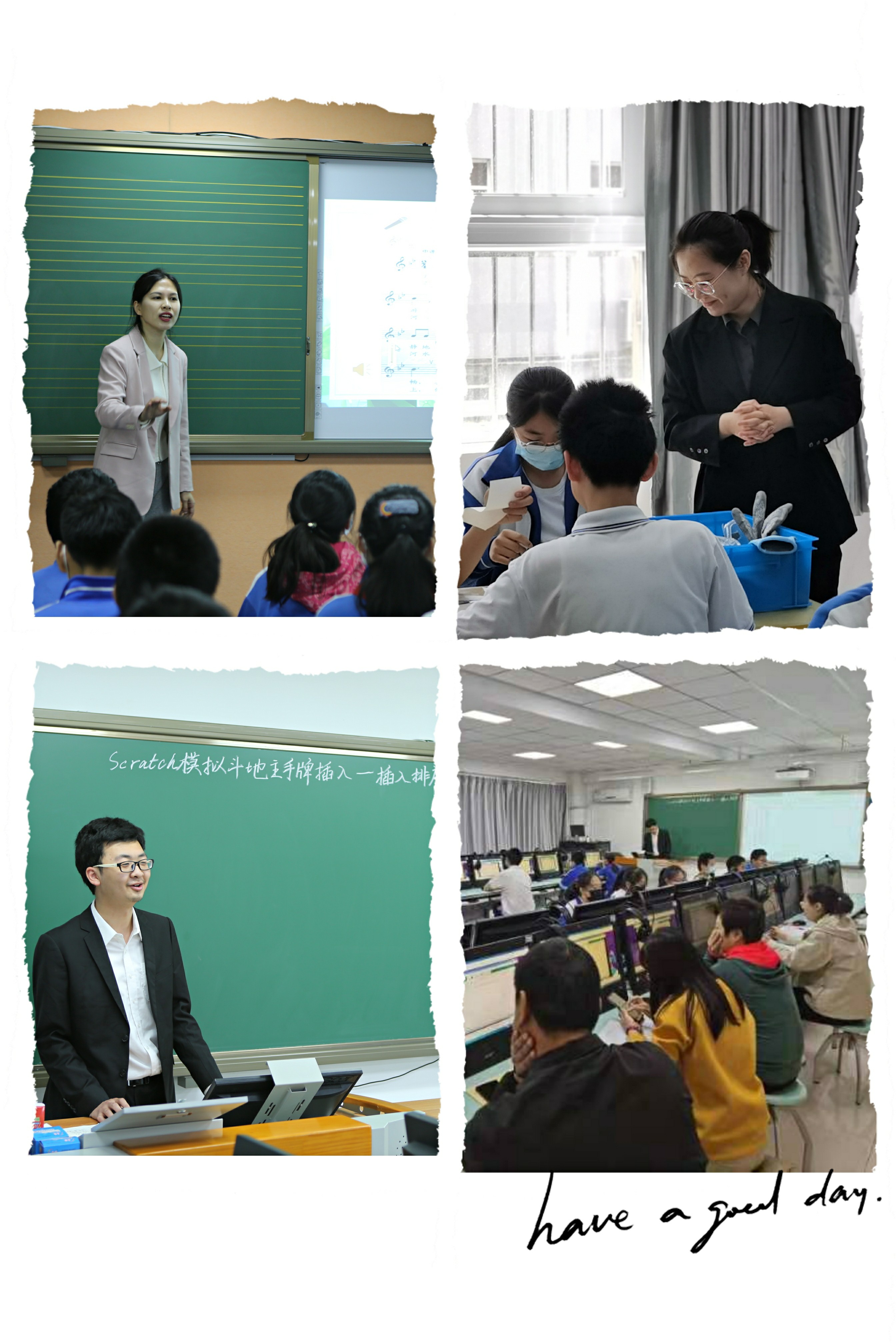 心理张妮老师的课对学生的实际生活和学习起到了指导作用,组内评课重点讨论学生活动体验的充分性,激发学生短时间内的思考。音乐朱令仪老师和组内教师研讨了提高问题设计的逻辑性,引导学生自主分享、总结鉴赏方法。信息刘志华老师课后反思了设置问题难度的梯度性,进一步落实简化操作实施过程。劳动技术郑真老师和组内教师重点探讨了课堂上教师的引导作用和学生自主学习能力的培养。