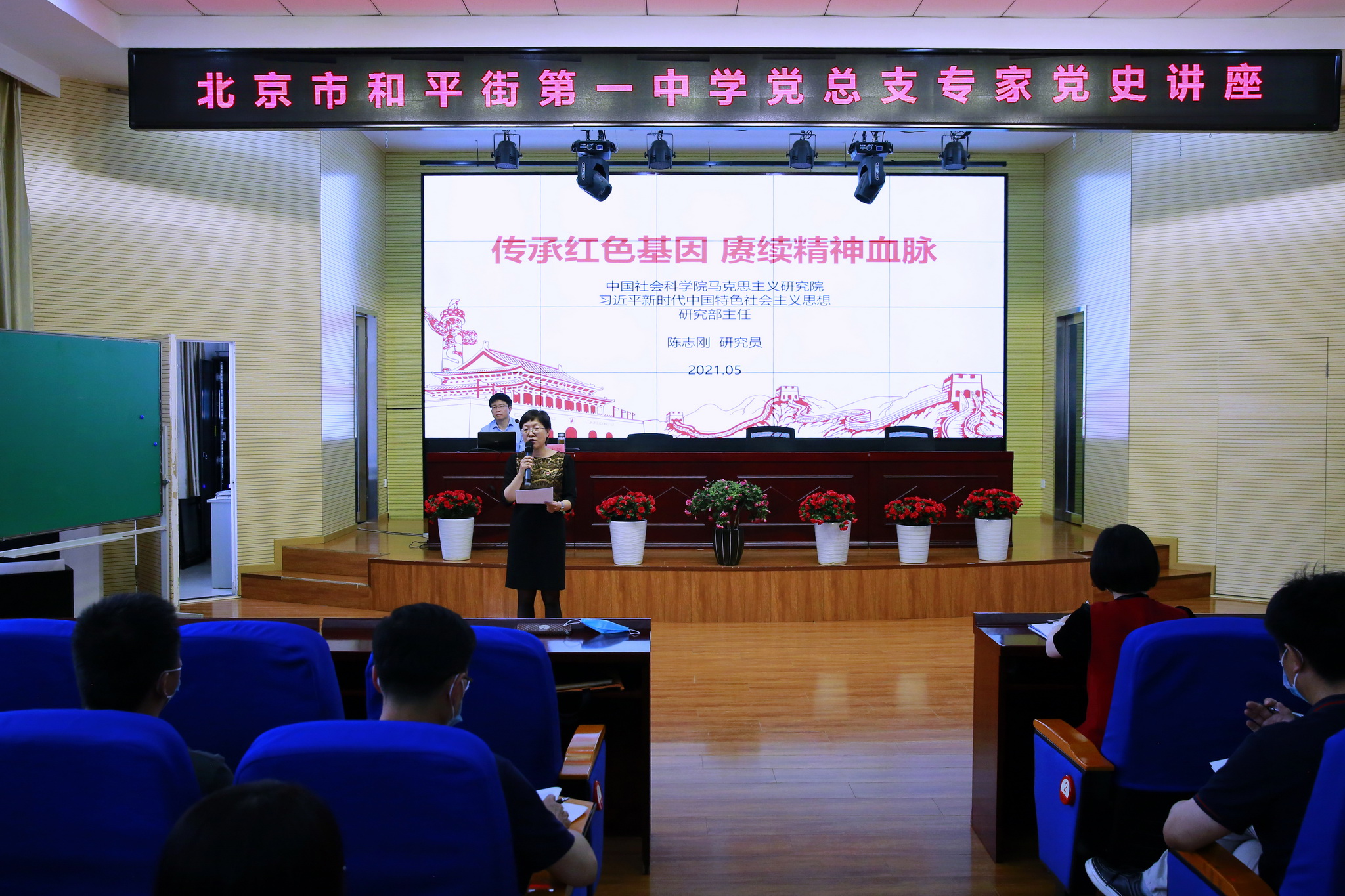 2021年5月18日,和平街一中在和平街高中校区举行党史学习专题讲座。校区全体教职工、高三年级学生和高一年级入党积极分子聆听了讲座。活动由张静书记主持。
