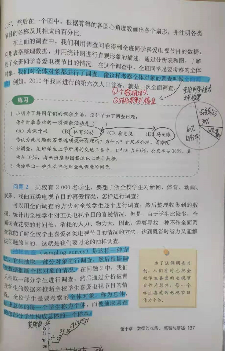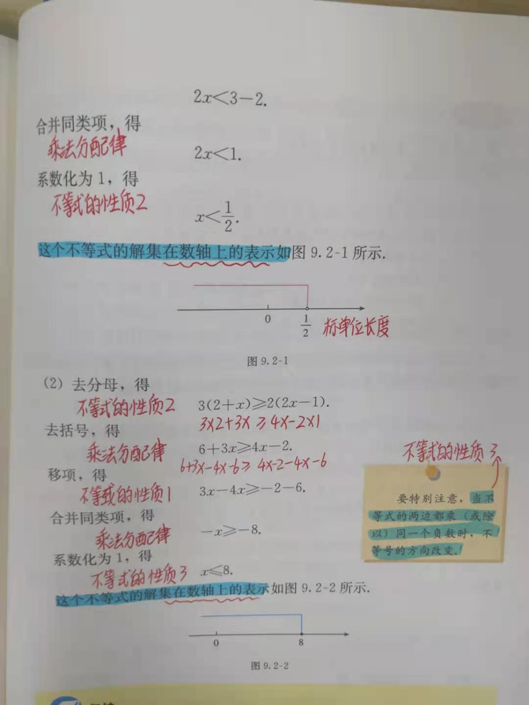 对于数学概念、数学定理、例题书写过程,教师会让学生一字不漏的先阅读教材,再归纳,在理解的基础上记住知识要点。例如:一元一次不等式的解法,书上例题过程很详细,教师会要求学生在书上注明步骤依据,知其然并知其所以然。再如:在学习统计这一章时,要求学生在教材上画出重要统计术语,重点看书上的规范图表,通过阅读课本上的书写、画图的规范过程加深理解。