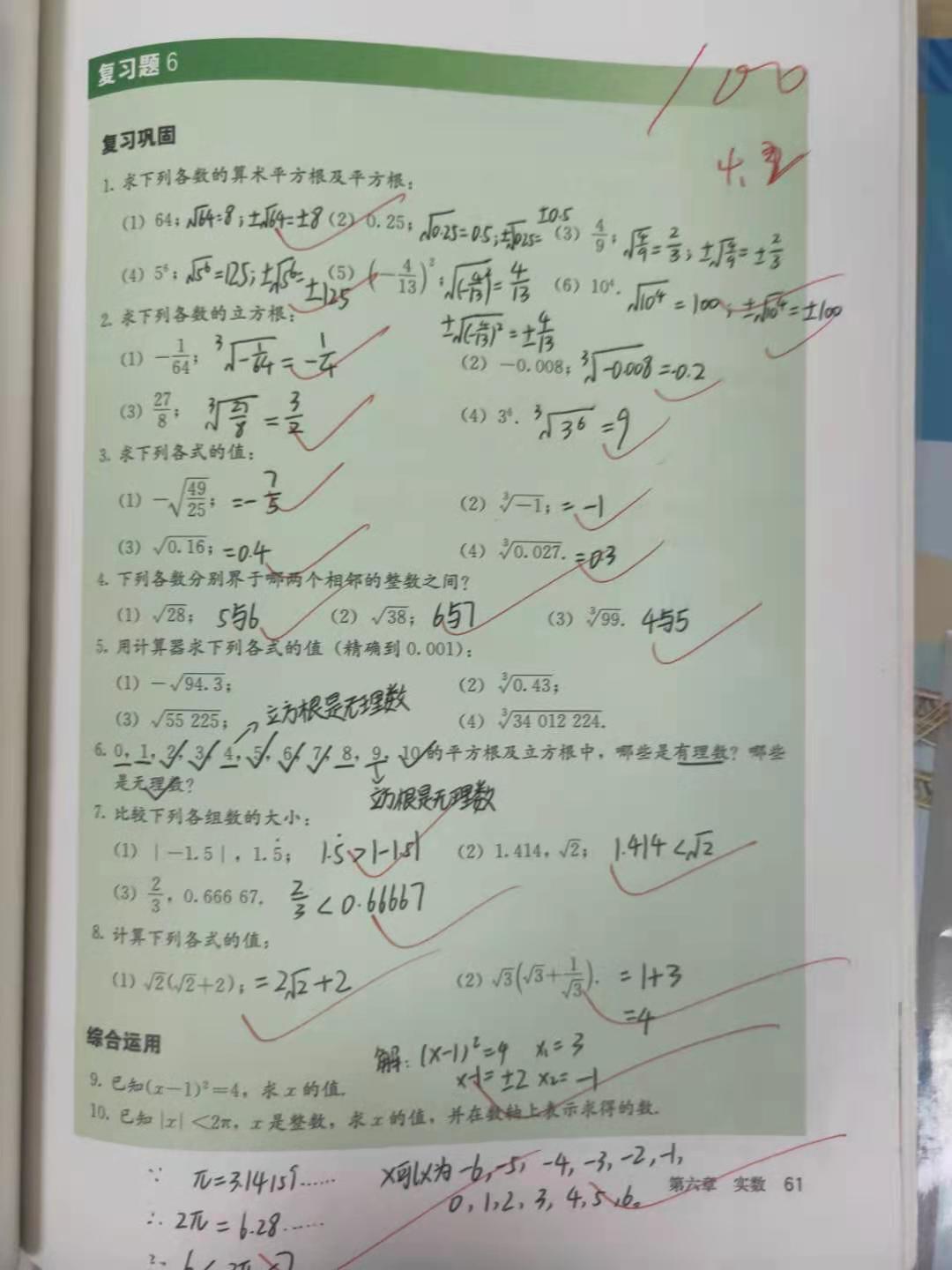 教材中的课后练习能有效巩固学习效果,每一节新课之后教师都会指导学生完成课后练习,并尽量在课堂上完成;每一章学完之后,教师会让学生在书上作答章复习题,避免抄题工作,给学生减负。