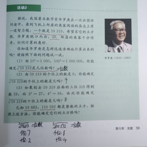 还有教材中的阅读材料,既能丰富学生的课外知识,又能应对考试,也是教师绝对不会放过的素材。曾经在一次区统考中,以教材中“华罗庚脱口而出的立方根”的小故事为背景,考查了学生知识的迁移能力。