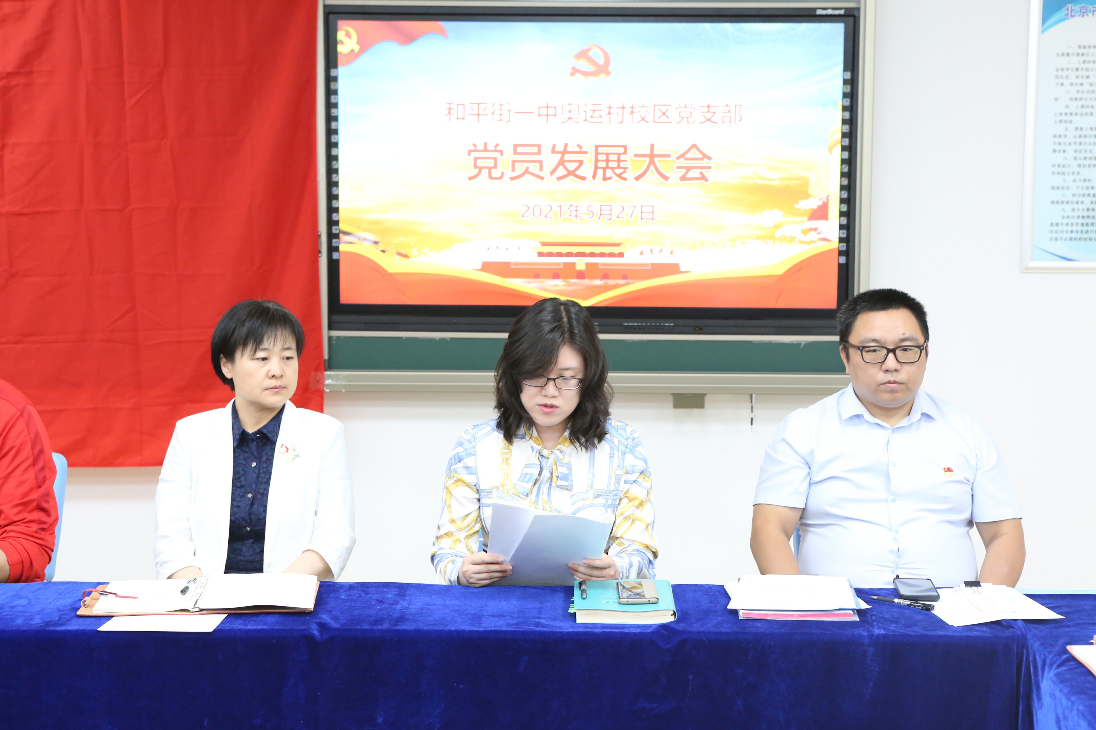 2021年5月27日,北京市和平街第一中学奥运村校区党支部为常连霞和张劼两位同志召开了党员发展会。奥运村校区党支部书记校区主管周建萍副校长主持本次发展会,奥运村校区党支部全体党员参加了本次会议,和平街一中党总支书记张静,和平街一中党务办公室崔静主任及部分入党积极分子列席了本次会议。