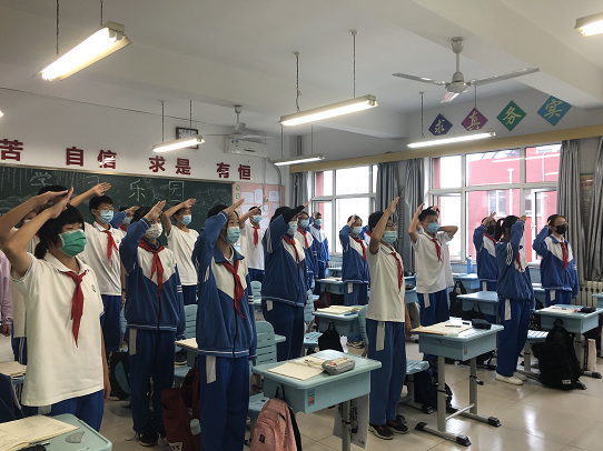 为增强学生爱国主义情怀和弘扬爱国主义精神,2021年5月31日,和平街一中朝来校区举办国旗班老队员的退队仪式。