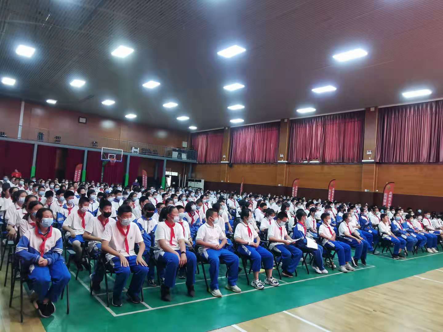 2021年6月8日下午四时,和平街一中朝来校区在风雨操场组织召开了初一年级期中表彰暨期末动员大会,年级组长陈立娟老师主持会议,全体初一学生及班主任参加。