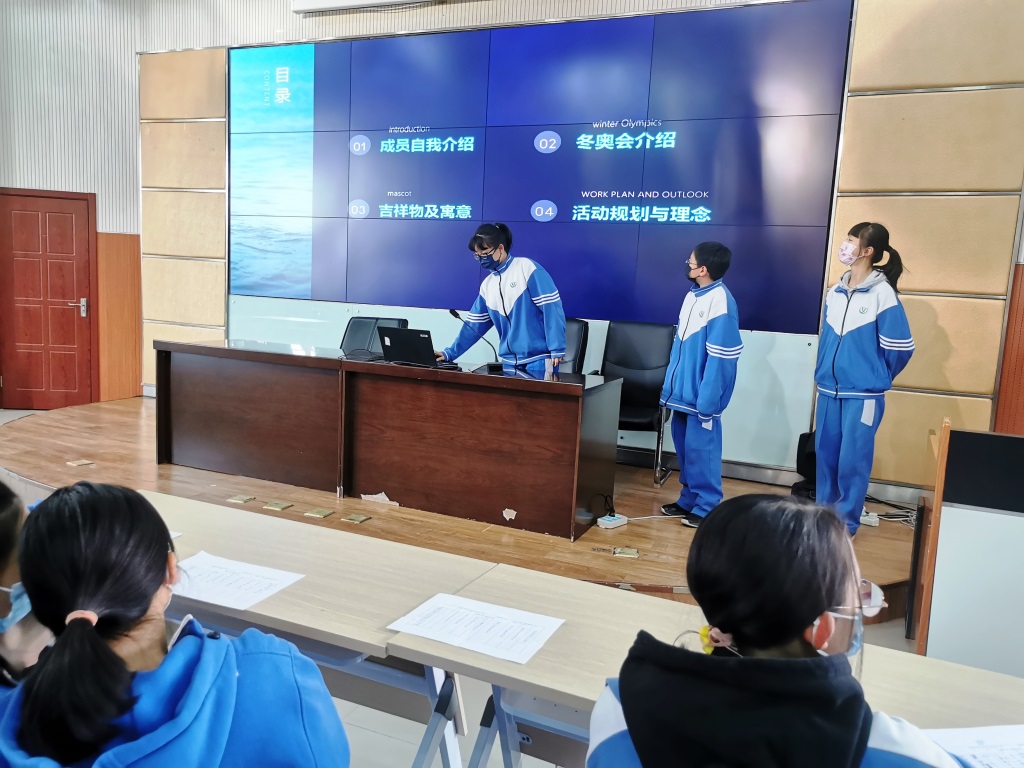 文体部的面试5人一组,共分5组。面试前,部长提前通知各组成员以冬奥会为主题策划一项学生活动,并共同制作PPT用于面试当天的活动说明。面试主要包括三个环节。首先是自我介绍。然后候选人分组展示活动策划的PPT,分为冬奥会介绍和活动策划两部分,考查候选人的人际交往能力、表达能力、组织策划能力以及计算机操作的能力。最后是自由提问,针对自我介绍和PPT的内容对每位候选人提出个性化的问题,考察了他们的应变能力以及处理事情的能力,面试顺利结束。