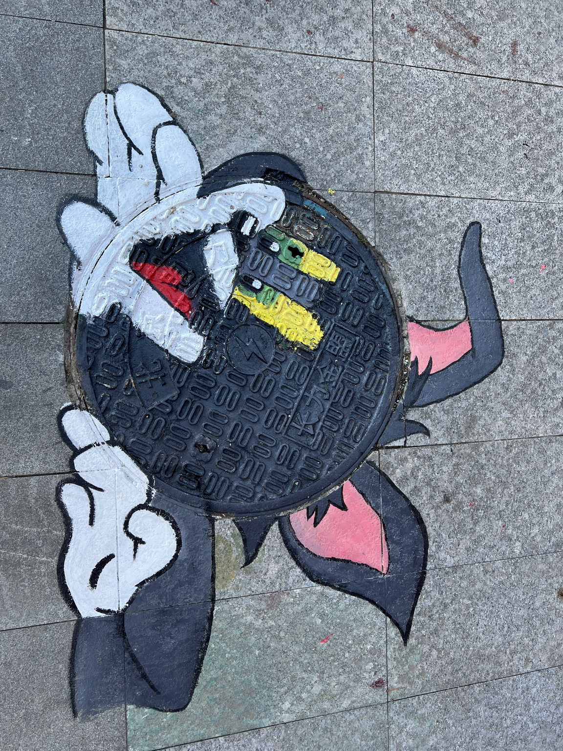 同学们选择操场上的部分井盖进行创意涂鸦。经过一番精心的设计与创作,一幅幅作品跃然眼前,让本来单调的井盖成为了校园内一道靓丽的风景线。井盖涂鸦是学生参与文明校园建设的巧妙路径,是展现学生特长的交流平台;更是学校注重学生创新能力培养,弘扬社会主义核心价值观的体现。活动得到了年级组长、班主任和总务处的大力支持。