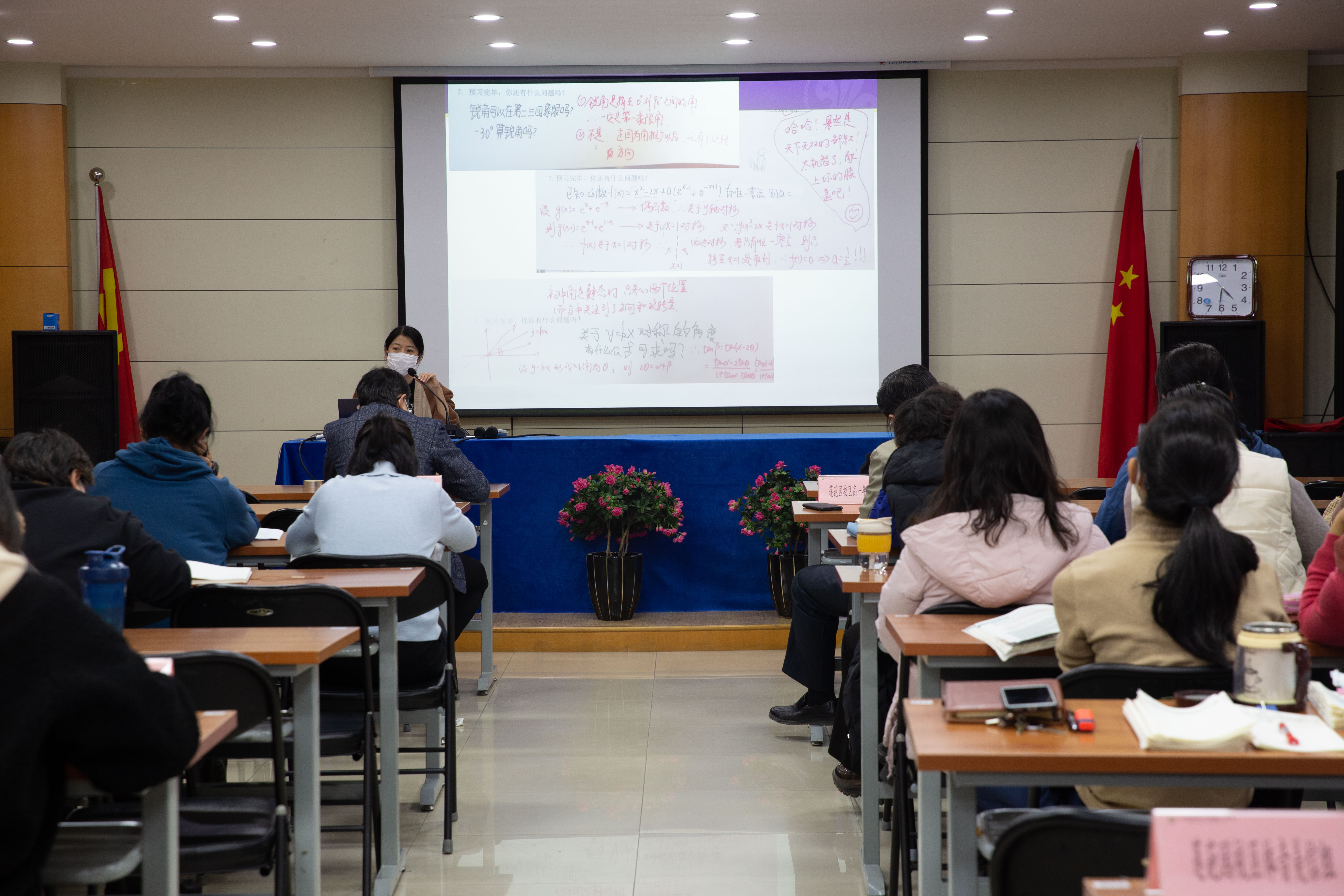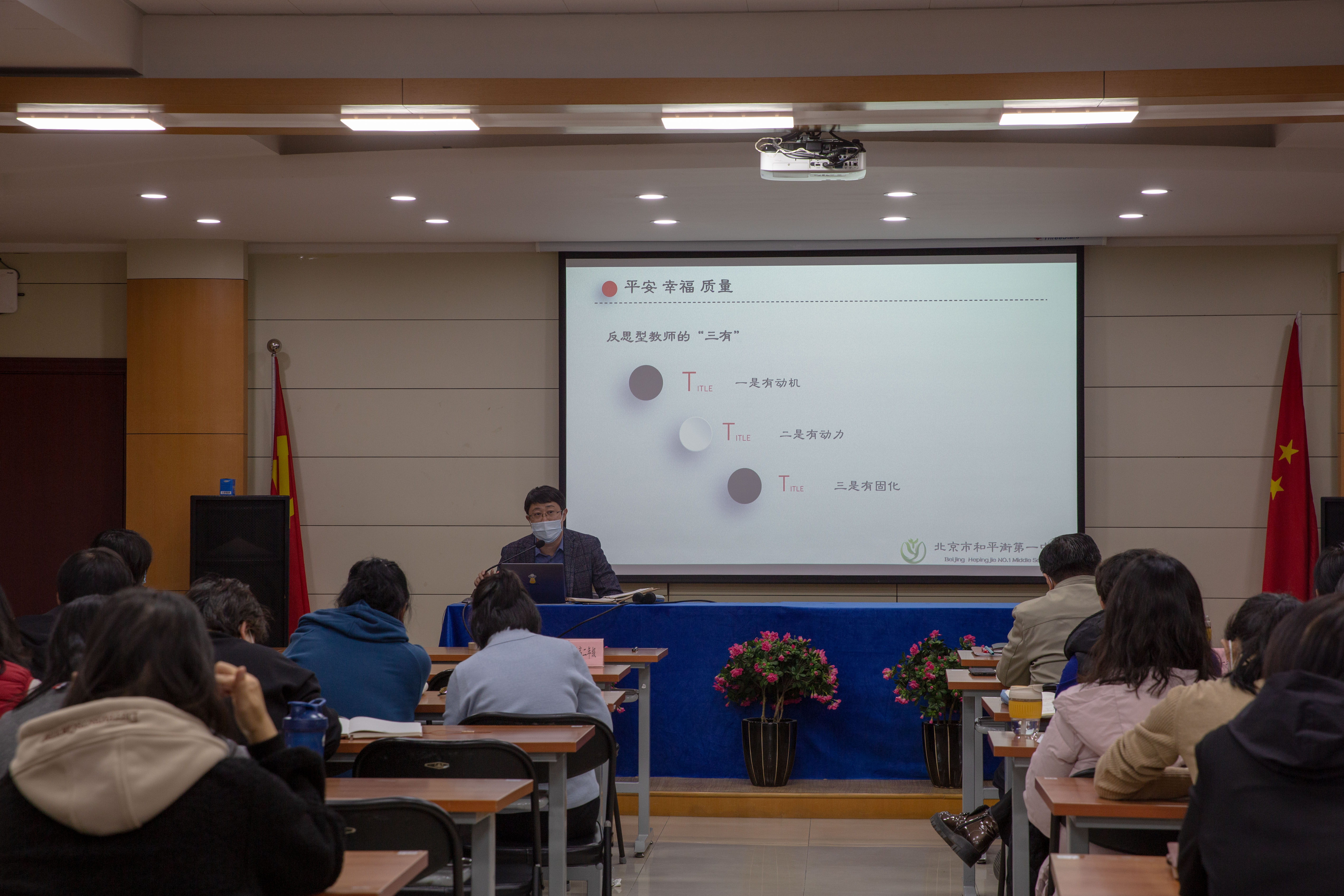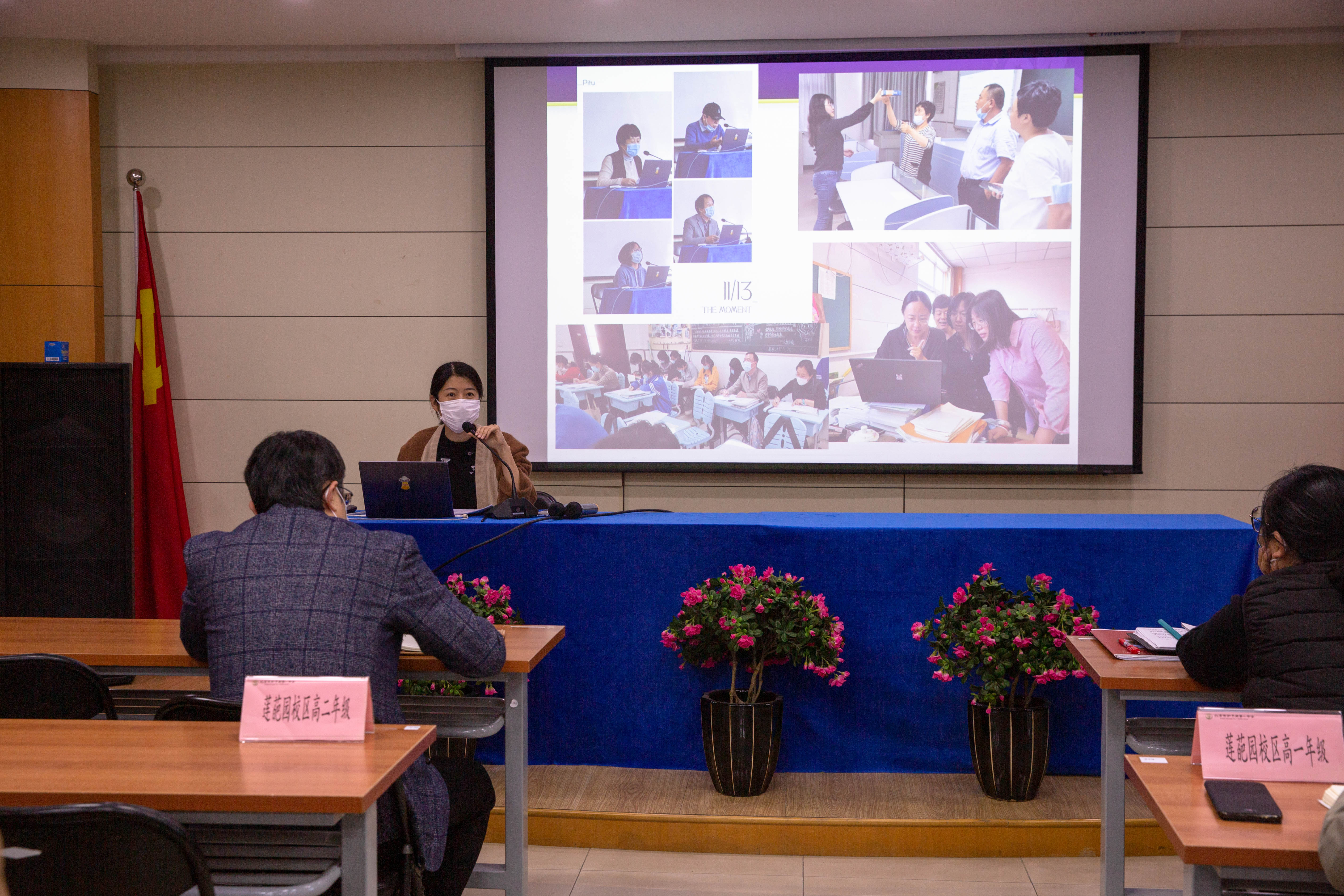 在不断提升教育教学质量,办人民满意教育的大时代背景下,在共建朝阳教育强区的大教育环境下,北京市和平街第一中学北苑莲葩园校区以朝阳区普通高中“课堂教学质量年”为依托,结合本此期中教学常规检查中呈现出的亮点与不足,于2021年11月30日,利用全体教师会时间,进行了基于校区特色的深入沟通、自评自检,为后续教学工作的提升提供有利保障。
