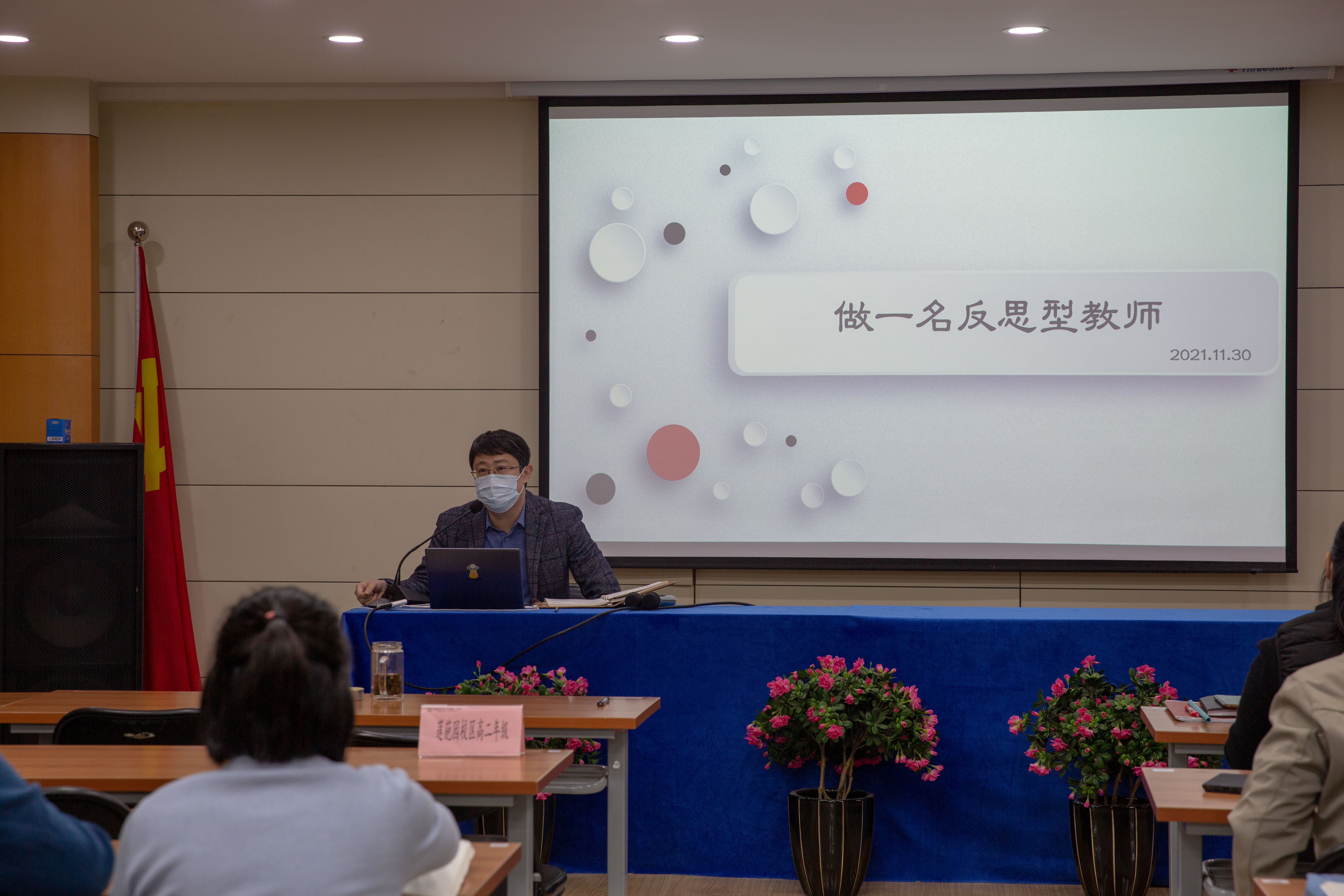之后,校区主管杜鹏副校长以《做一名反思型教师》为主题,从“教师职业特点决定教师要善于反思”和“教师应该如何反思 ”两个维度与教师进行了沟通,旨在带领全体教师进行职业生涯的回望,不忘坚守、砥砺前行,在快速发展的教育改革之路上永葆初心、持续开拓。