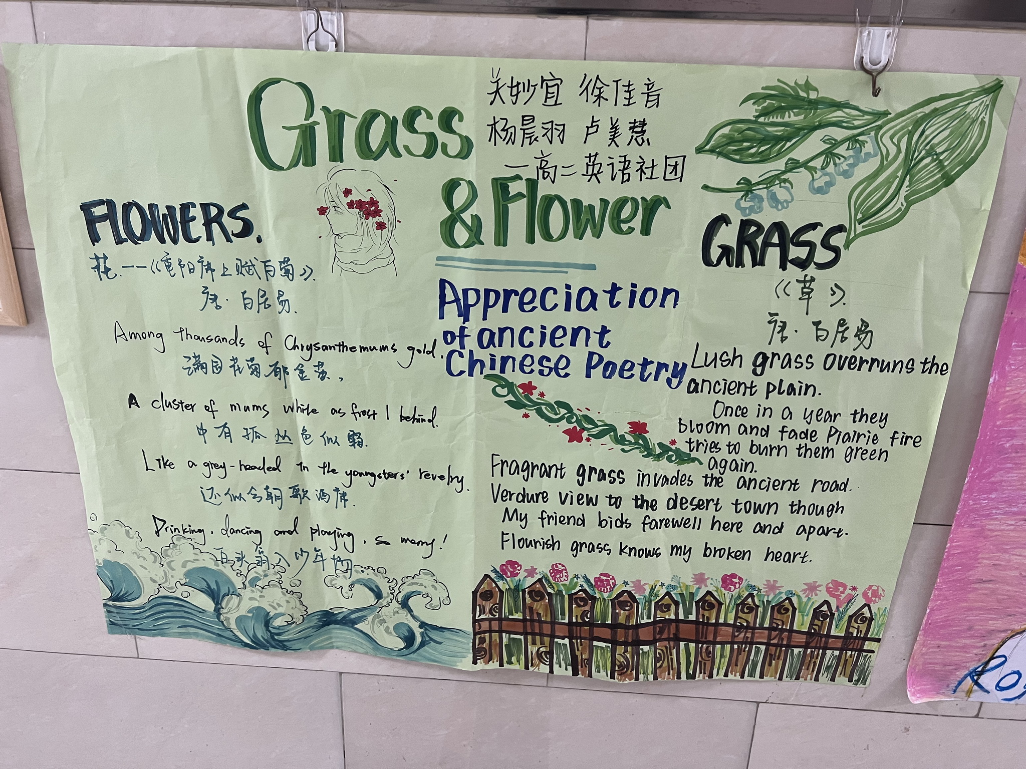 期中考试后,各学科老师给我们布置了学科月展示活动。进行了简单的分组后,老师们带领我们积极踊跃的商讨学科月展示的筹备工作。经过大家的集思广益,最终敲定了学科展示月活动的详细方案,包括各个小组需要用到的道具和要展示的内容,然后开始分组进行展板制作。