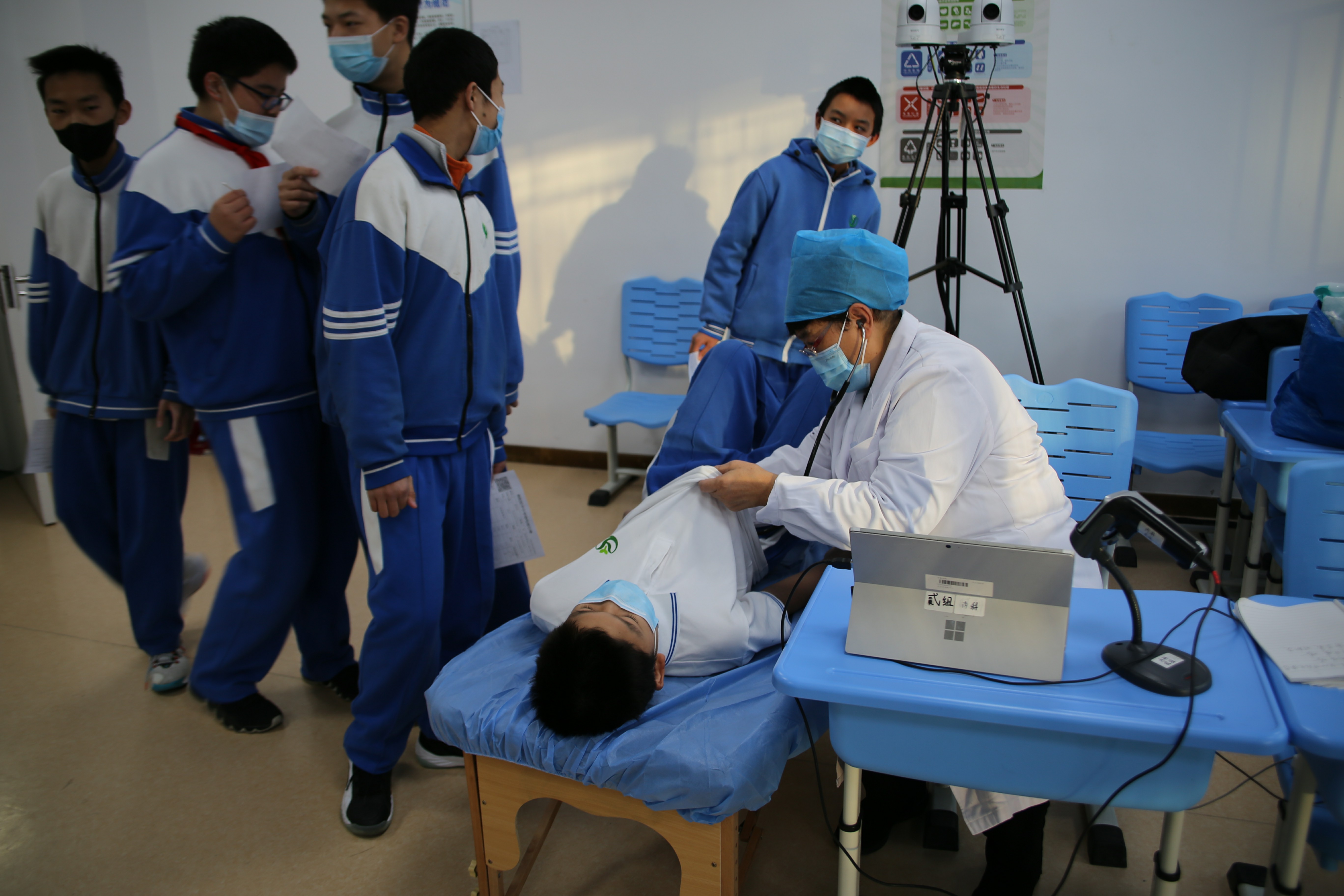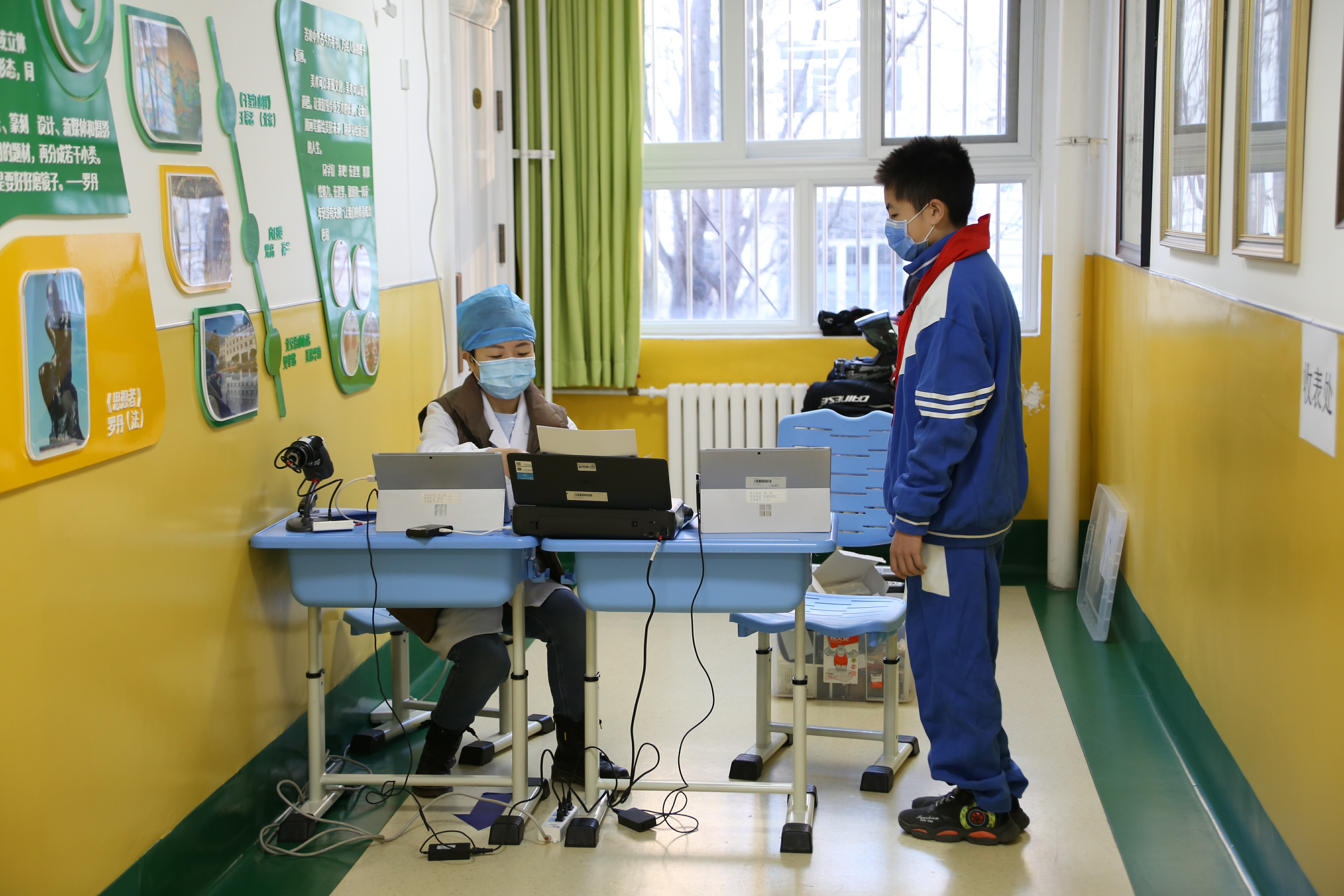 2021年12月24日上午,市体检中心来到奥运村校区为全校学生做身体常规检查。