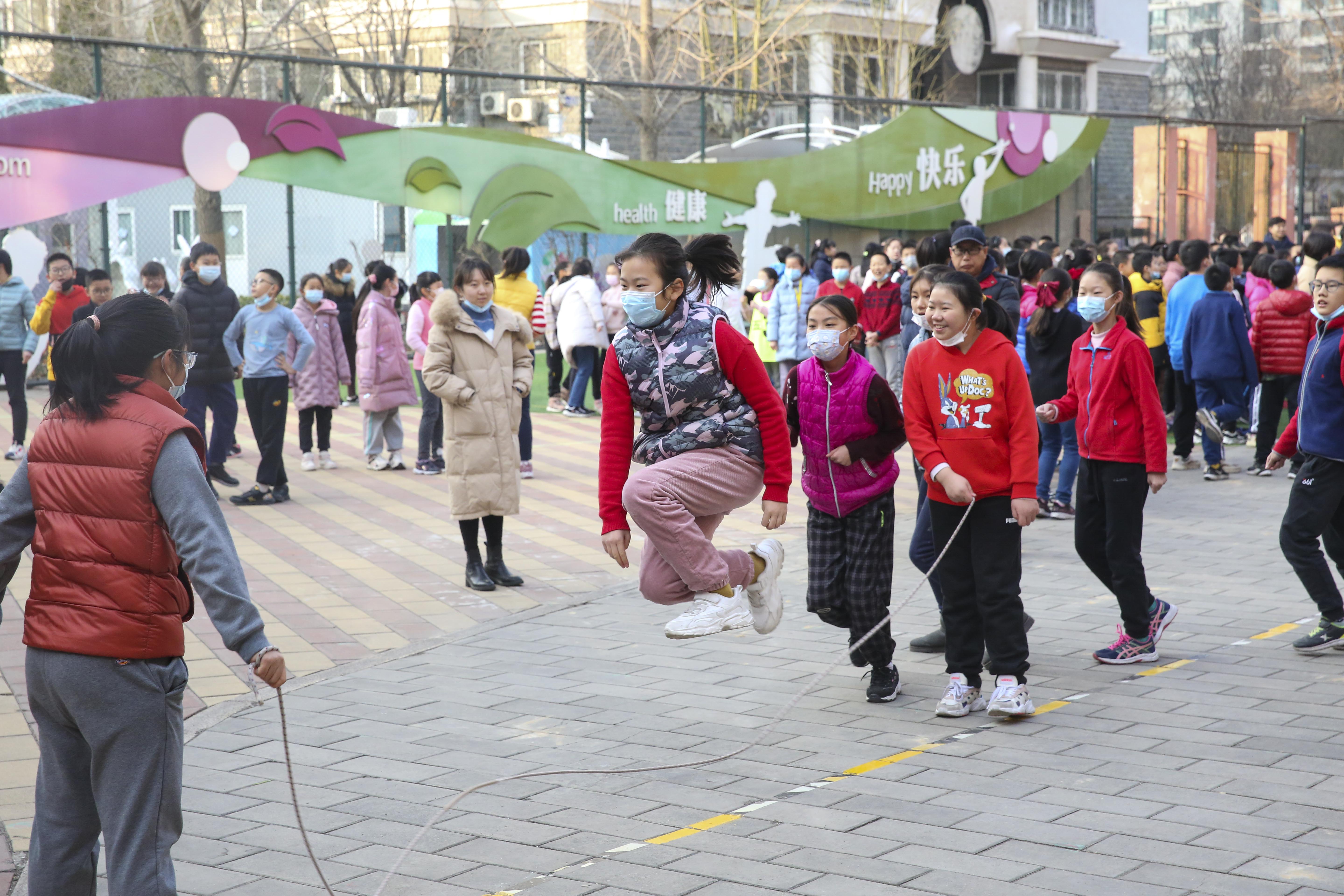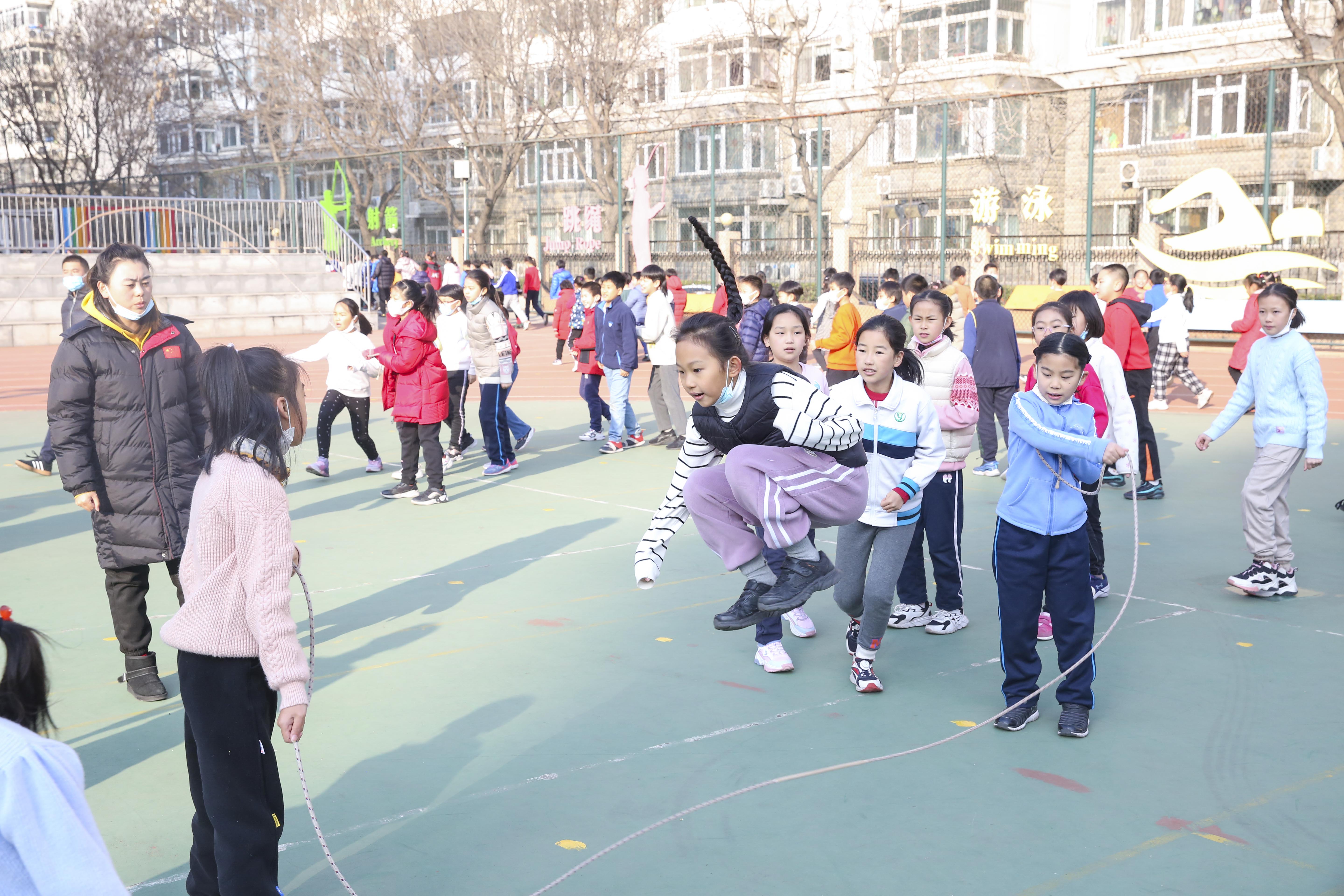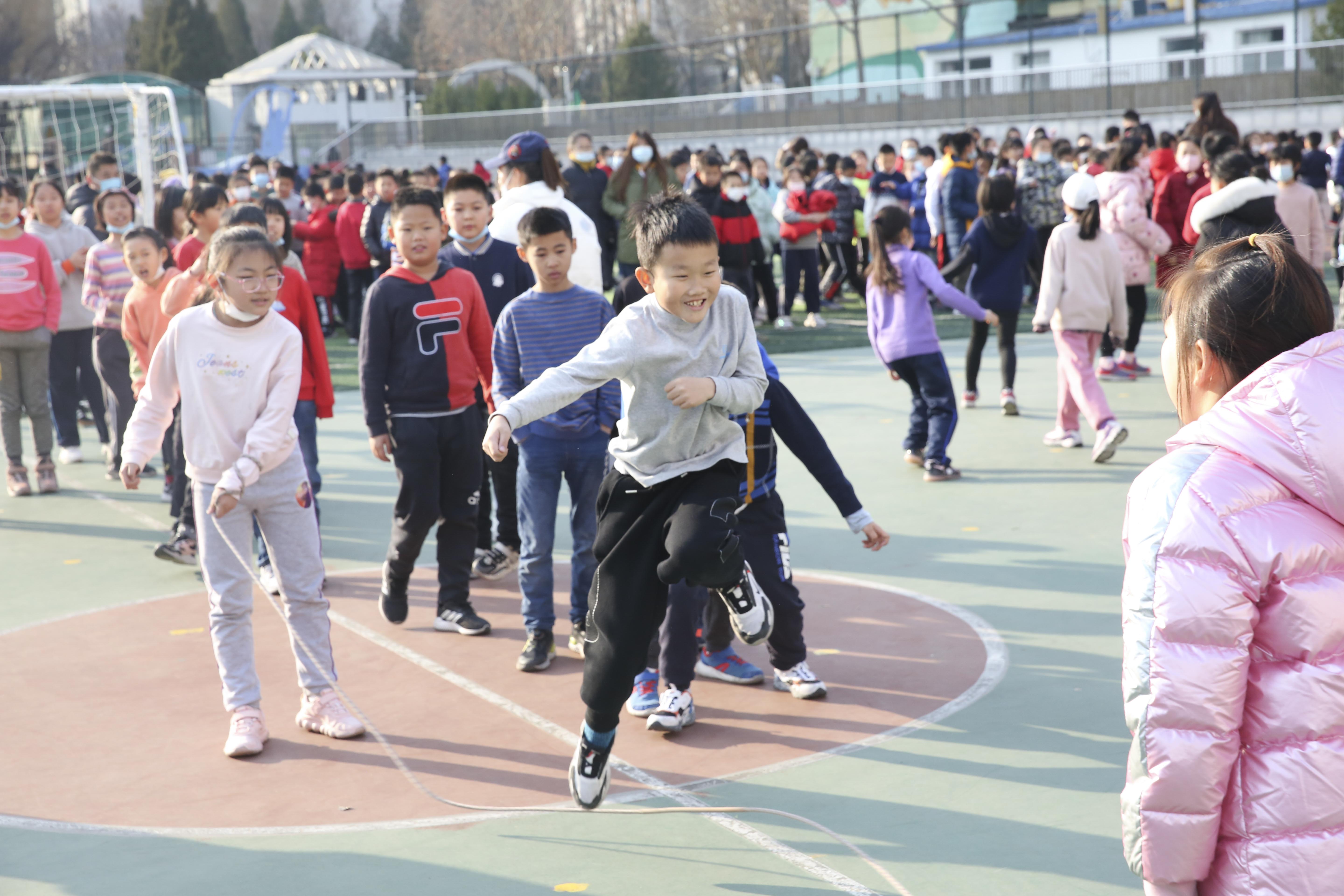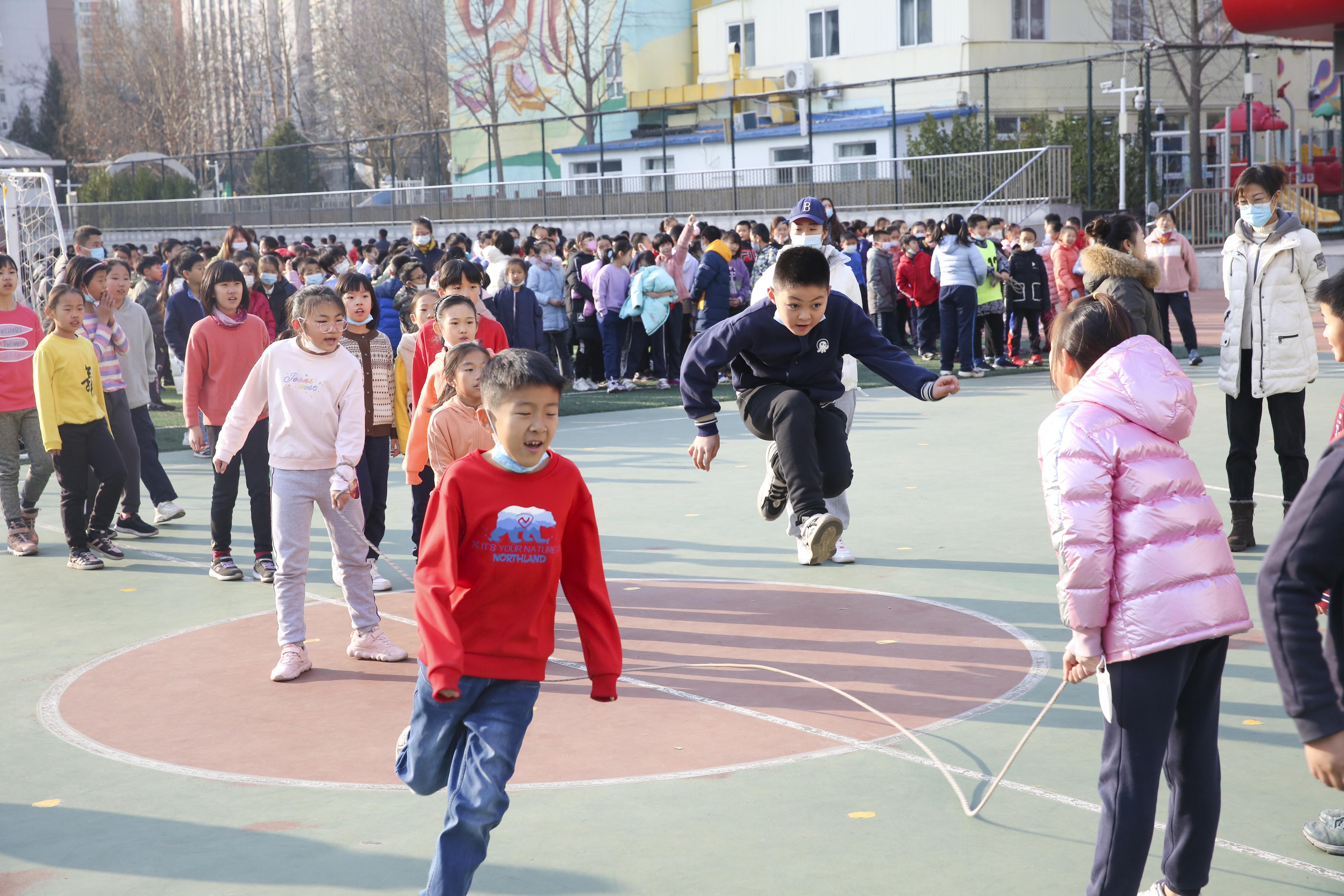 为落实“健康第一”的指导思想,提高学生体质健康水平,丰富学生文化生活,培养学生积极锻炼的良好习惯,让学生在享受阳光体育的同时,充分展示集体风采,由和平街一中清友园校区体育组承办的“阳光体育运动”跳长绳比赛于2021年12月22日正式拉开序幕。