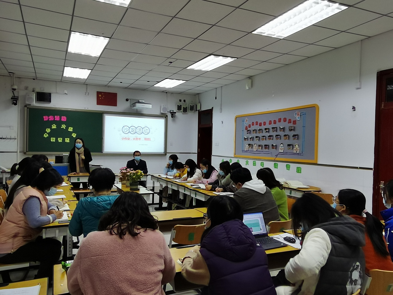 2021年12月23日,北京市和平街第一中学初中校区召开了以“小作业、大思考、精管理”为主题的教学沙龙活动,校区主管校长邹校长,教学处黄主任以及初中三个年级的班主任和部分青年教师参加了此次活动。