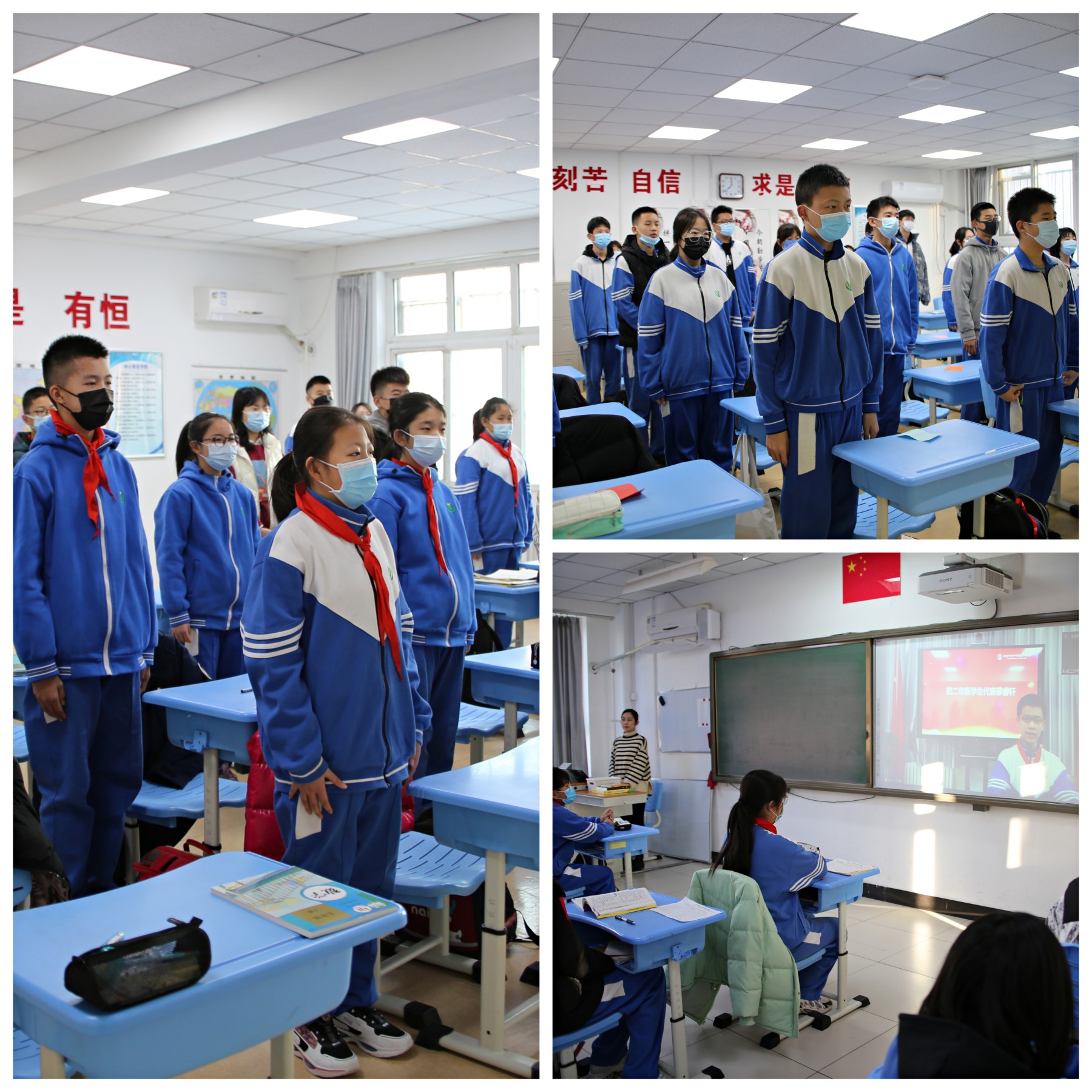 在和平街初中校区,学校团委书记刘争老师通过讲述自己作为一名奥运志愿者的工作经历,为大家展示了一名中国青年、一名团干部的使命与担当,并以此鼓励所有的学生在新学期要树立理想,坚定信念,努力迎接时代挑战。