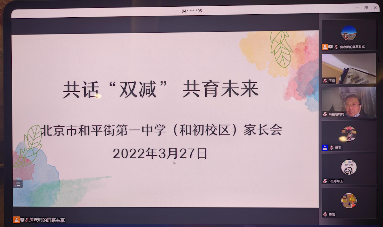为促进学生健康成长,回应家长关切问题,营造良好的家校环境 ,让每一个家庭更好地了解“双减”背景下学校教育理念与举措,和平街初中校区于3月27日晚召开了以“共话双减 共育未来”为主题的线上家长会。