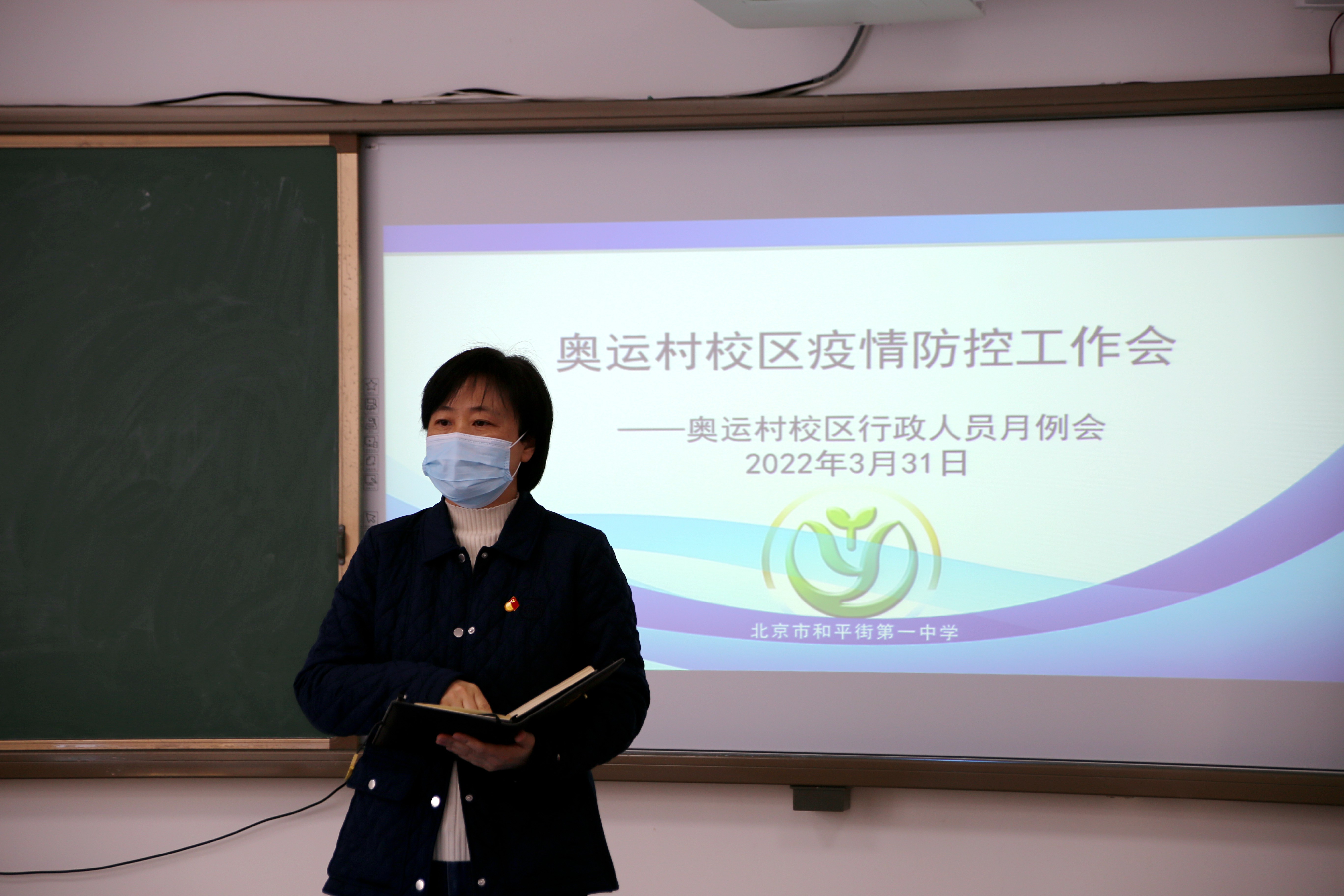 和平街一中奥运村校区自创建以来行政人员坚持月例会制度和部门周例会制度,目的是及时反馈工作中的问题,集中学习,统一思想,加深认识,团结协作。2022年3月31日,由校务办王争主任主持进行了本学期第一次行政人员月例会。由于近期疫情形势复杂严峻,本次例会主要内容就是强化常规工作,压实疫情防控责任。校区主管、行政干部及全体行政人员参加了本次会议。