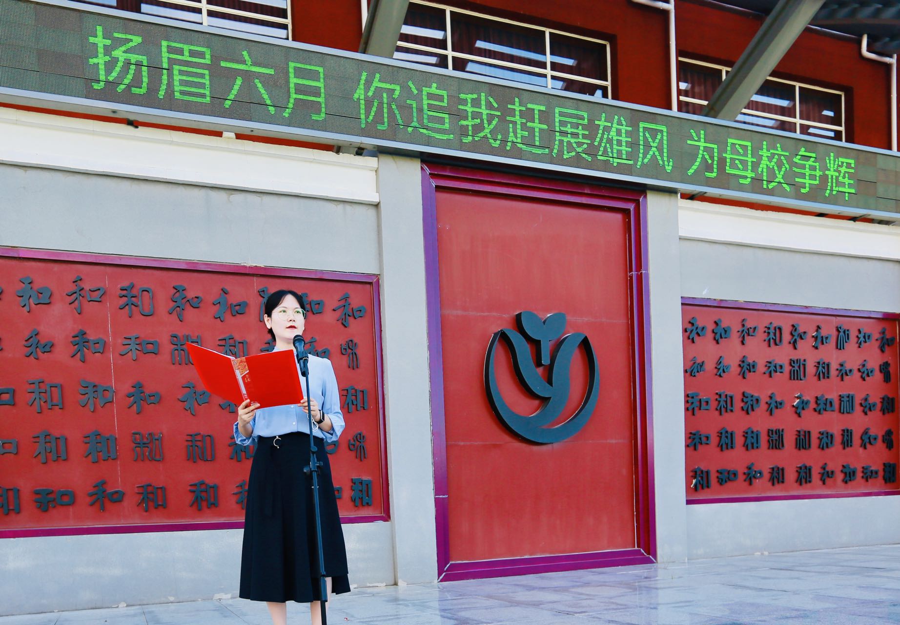 大会第一项,由张景鲜校长向同学们介绍初三全体教师并授班牌。崭新的班牌承载着凝聚的力量,老师们合力托举学子的理想。