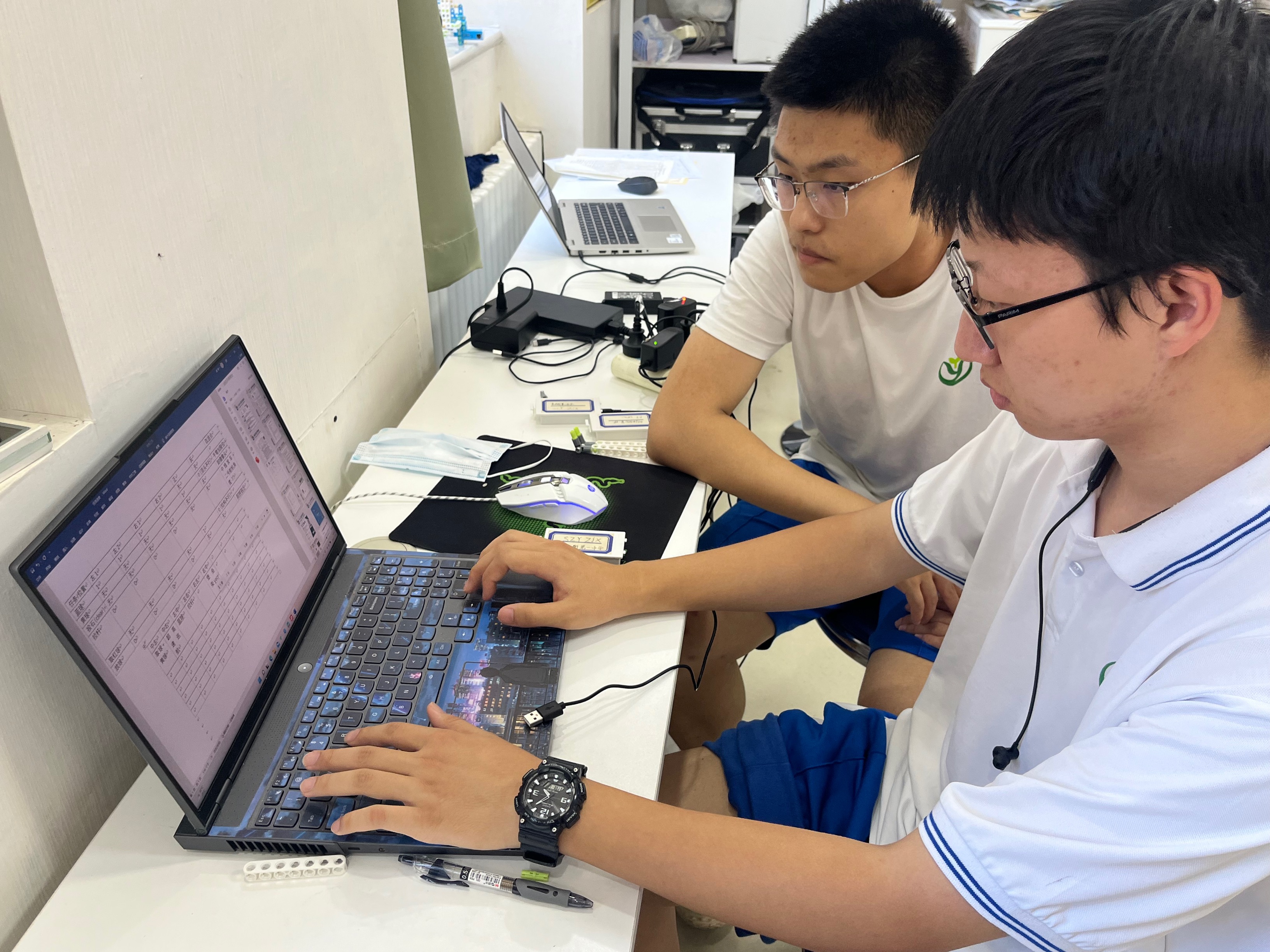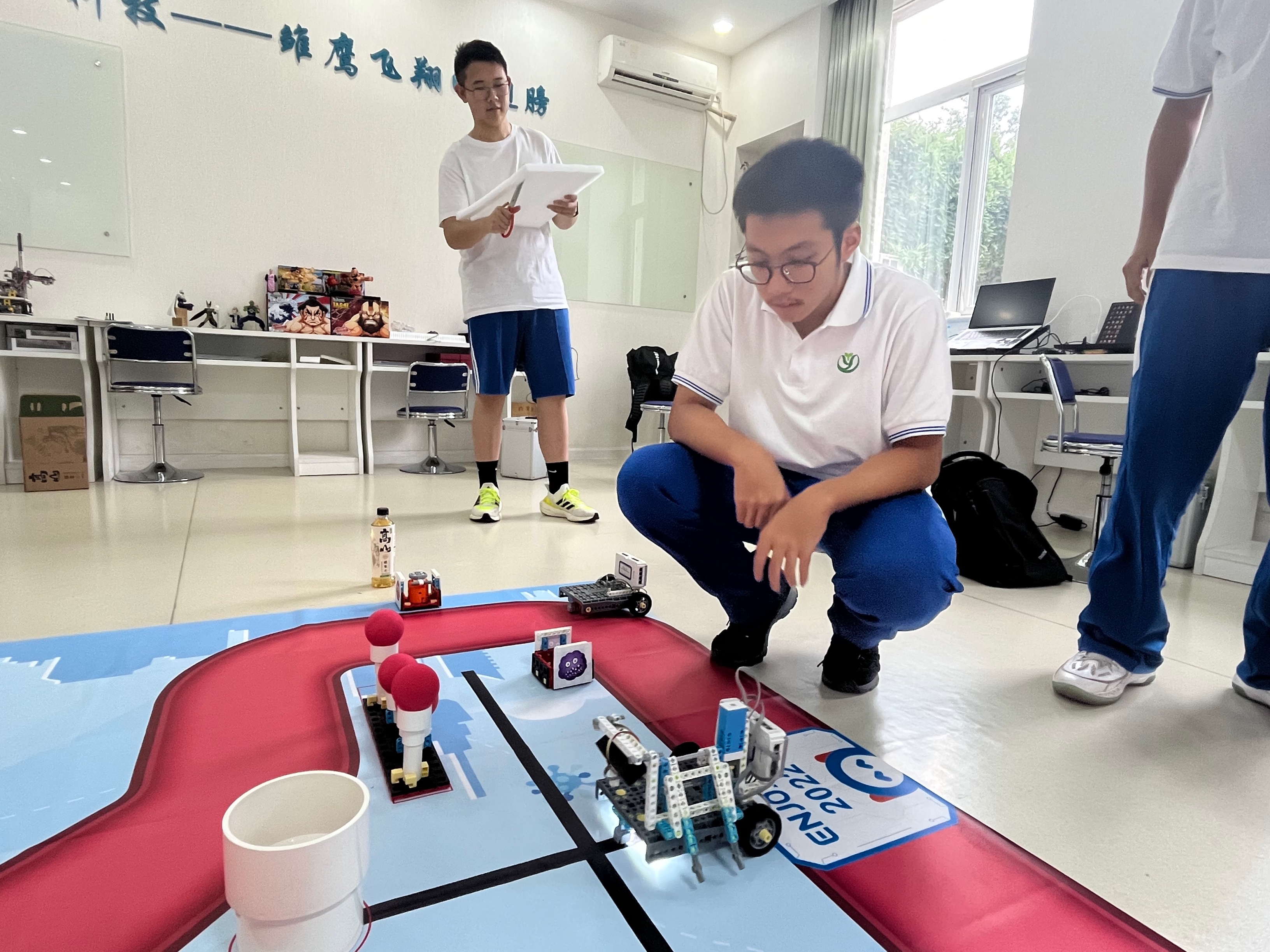 比赛当天,经过两轮的积分赛,周佳星和崔同一组成的“烛龙队”获得该项目中学组亚军,孙铂和宋泽宇组成的“白泽队”获得该项目中学组季军。参赛师生利用暑期时间积极备赛。在张岩老师指导下,学生在训练中深入学习并掌握了摄像头循迹和人工智能图像识别算法,同时能根据比赛任务逐渐完善整合机械结构,通过模拟赛提升心理素质形成彼此间的默契配合。