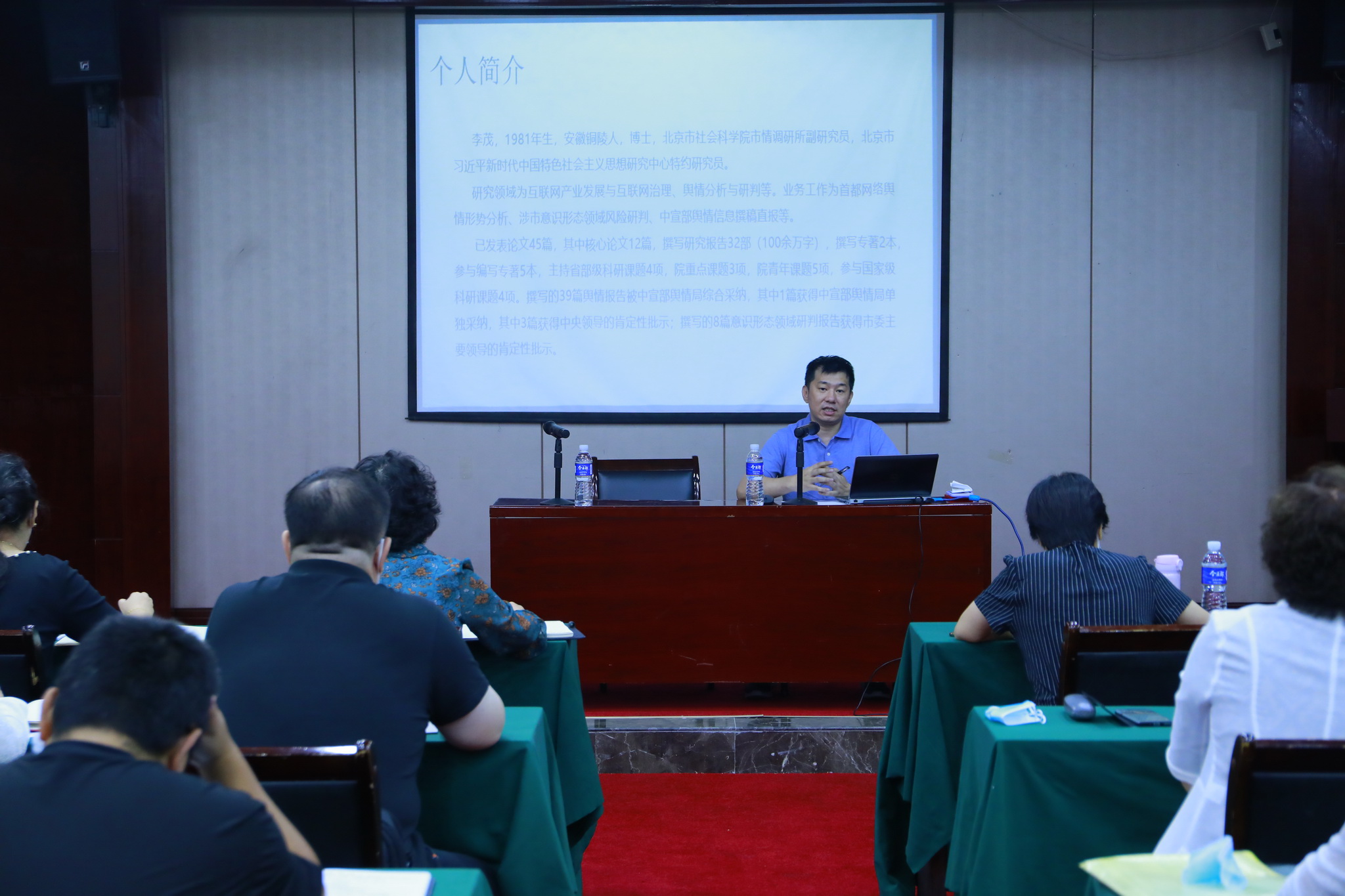 恳谈会期间,北京市社会科学院专家李茂对干部进行了中小学教育舆情工作原则与应对措施的专题培训,通过现实案例说明舆情的内涵、类型和特点,阐述了舆情工作重要性,并结合学校实际情况,提出了提升舆情工作的观点和建议。