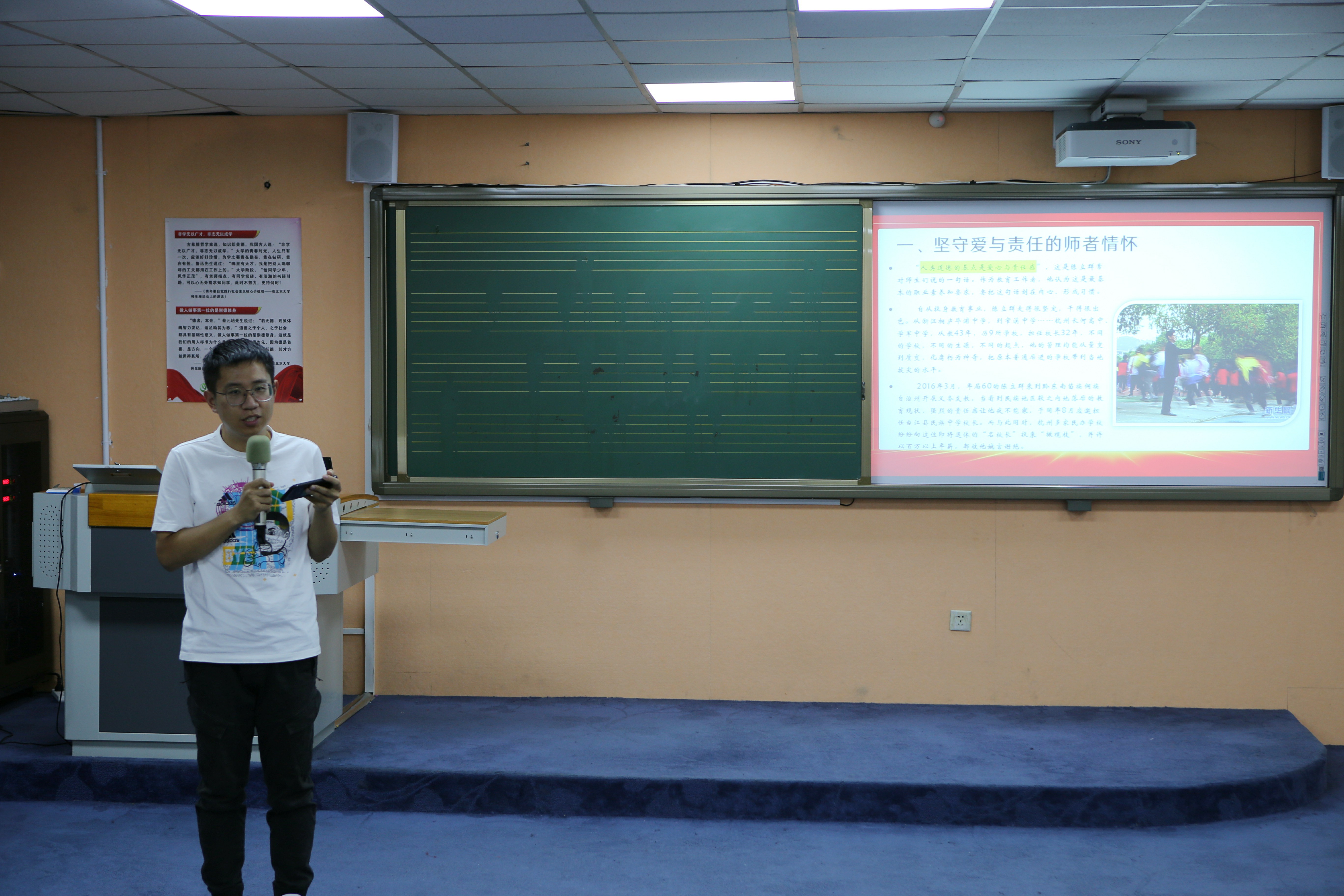 7位教师就时代楷模的故事进行了精彩演讲,时而铿锵有力,时而悠远绵长,他们以感人肺腑的话语表达出对时代楷模的敬仰。教师们认真聆听,受益匪浅,表示以这次演讲为起点,在今后的教育教学中,学习时代楷模的精神,不断锤炼自己,提升自己,超越自己,成为名副其实的师德模范!