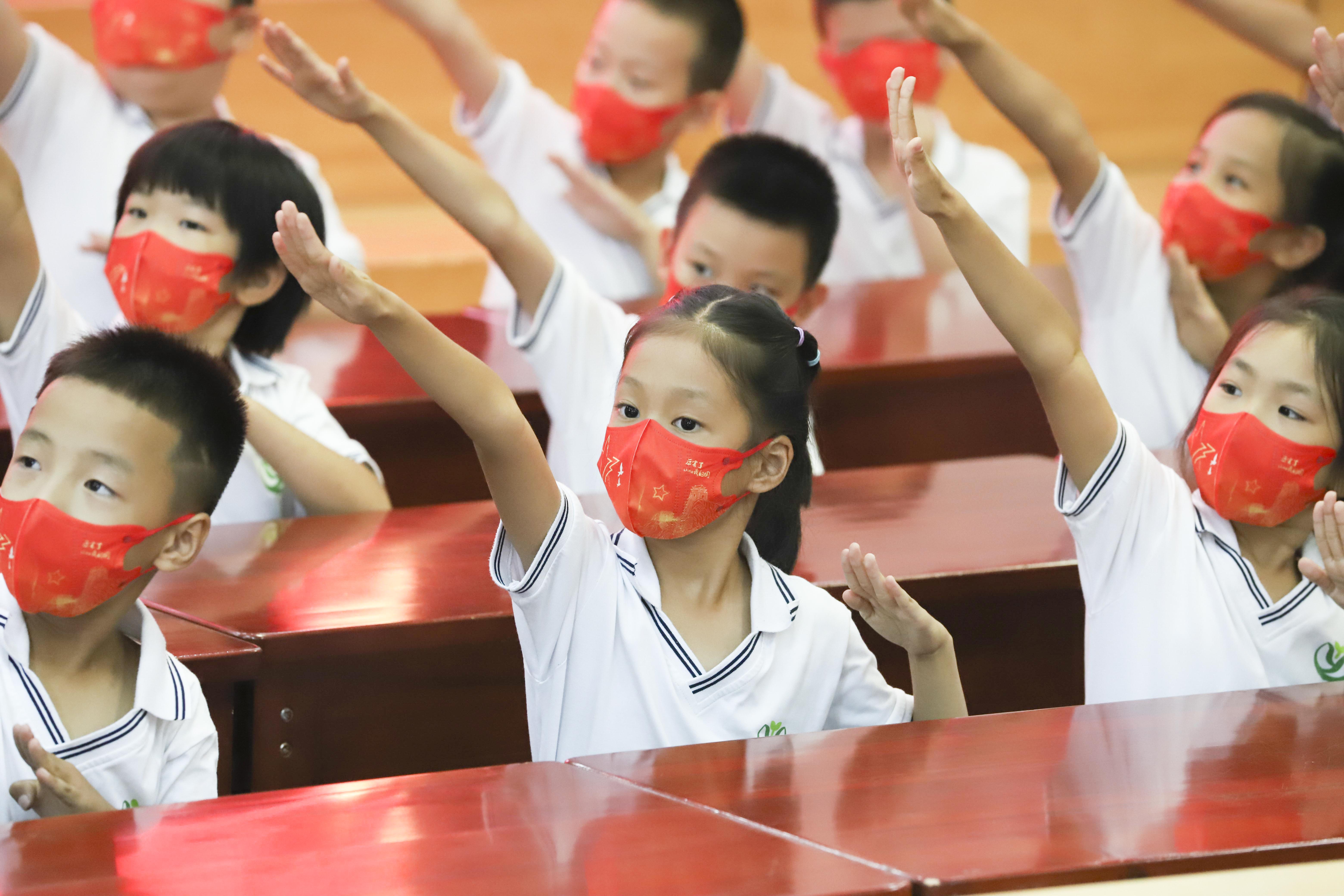 展示时,孩子们在欢快、奔放、节奏感鲜明的《少年》《闪闪的红星》《让我们荡起双桨》《天天向上》《大梦想家》《一起向未来》《如愿》等音乐伴奏下,或挥动手臂、或击掌、或拍桌,动作整齐规范,脸上洋溢着自信、快乐与幸福。
